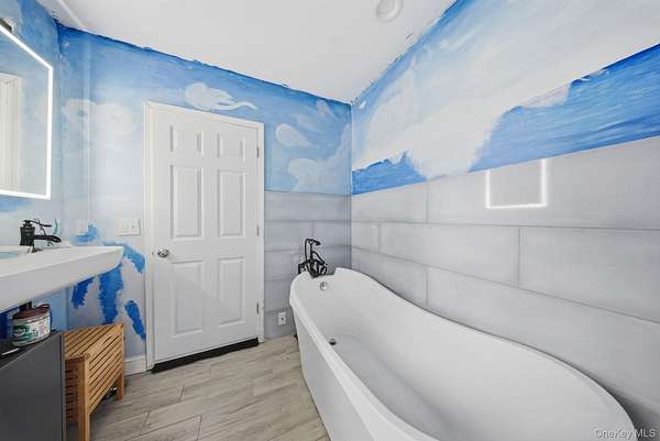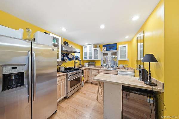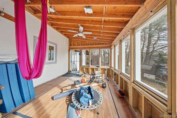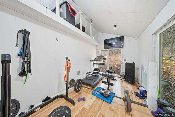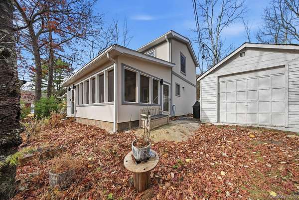 Welcome to 52 Martins Road, Huguenot, NY - a truly unique retreat designed to inspire. Originally built as a luxury writer's retreat, this thoughtfully crafted home blends modern design, artistic intention, and peaceful woodland surroundings. Each space was curated to spark creativity while offering comfort and functionality. The home features two distinctive bedrooms with vaulted ceilings and loft spaces, ideal for sleeping, writing, or studio use. A heated bathroom with a deep soaking tub connects the bedrooms, creating a spa-like experience tucked into nature. The modern kitchen is both beautiful and functional, featuring raw butcher-block countertops, sleek white glass cabinetry, a large propane gas range with exterior venting, a full-size refrigerator, and a separate beverage/wine fridge. Large windows frame serene woodland views, making every meal feel like a retreat. The living area is anchored by a high-end German wood stove, providing warmth and ambiance on cooler evenings. From here, access a mechanical/laundry room with whole-house heating and water filtration, a stunning heated tiled bathroom with French-inspired design, LED accent lighting, hydro-powered LED shower system, and heated toilet seat, and a spacious screened-in porch-perfect for summer dining, relaxing bug-free, or easily convertible to year-round living space. The exterior showcases a Japanese-inspired stucco finish selected for durability and longevity. A reinforced concrete slab foundation and cinder-block construction help regulate temperature year-round. The home is serviced by an 180-ft private well drawing from the pristine Delaware Watershed. Set on 4.7 private acres, surrounded by forest with access to nearby reservoirs and trails, the property also offers expansion potential, including a partially built garage/carport that could be completed and connected to the home. A rare opportunity to own a private, creative sanctuary in the mountains.
