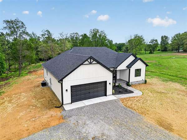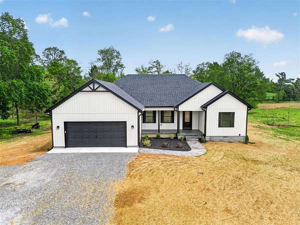 Don’t miss this exceptional new construction home built with attention to detail and upgraded finishes you’ve been looking for. Offering approximately 1,642 square feet, this 3 bedroom, 2 bath home combines modern design with everyday comfort on 1.92 +/- acres. Inside, you’ll find an open, split floor plan with beautiful hardwood and tile flooring, granite countertops throughout, and a spacious kitchen complete with an island, perfect for gathering and entertaining. The living area is warm and inviting, featuring a cozy fireplace and stylish finishes that elevate the entire space. The primary suite is thoughtfully designed with a tile shower, separate soaking tub, double vanity, and two closets, providing both luxury and functionality. Step outside to enjoy the covered back patio with stamped concrete ideal for relaxing or hosting while overlooking a generous yard in a peaceful county setting. With a two car garage and quality craftsmanship throughout, this home offers the perfect blend of style, space, and value. Located right next door to a similar beautifully built home, this is a rare opportunity to own a standout new construction property.