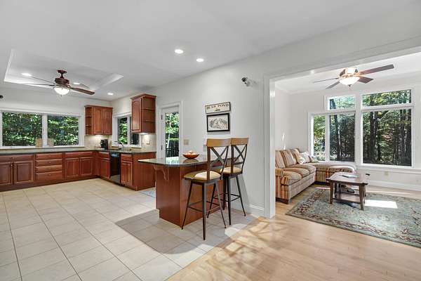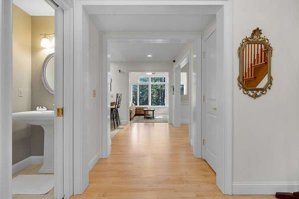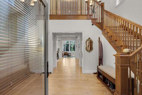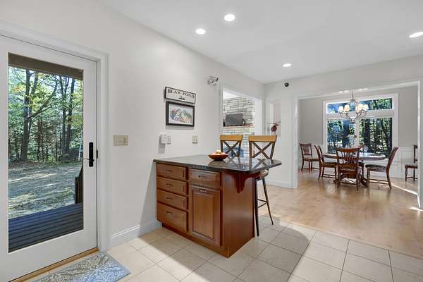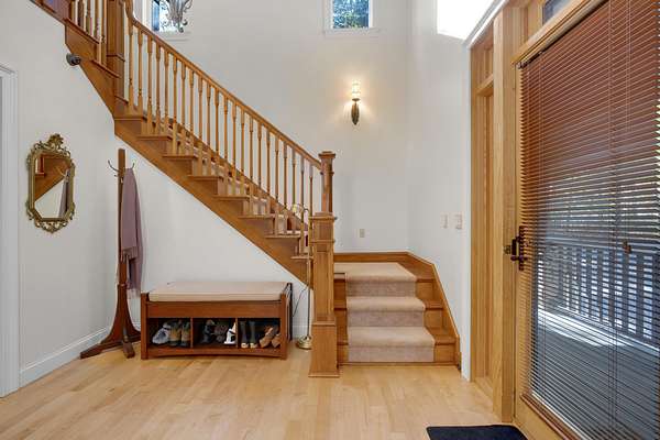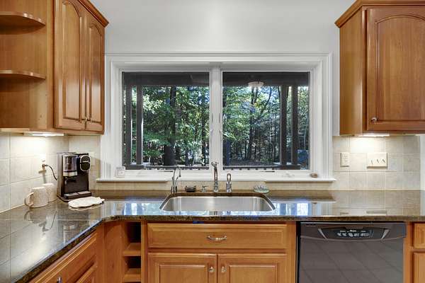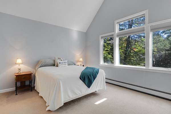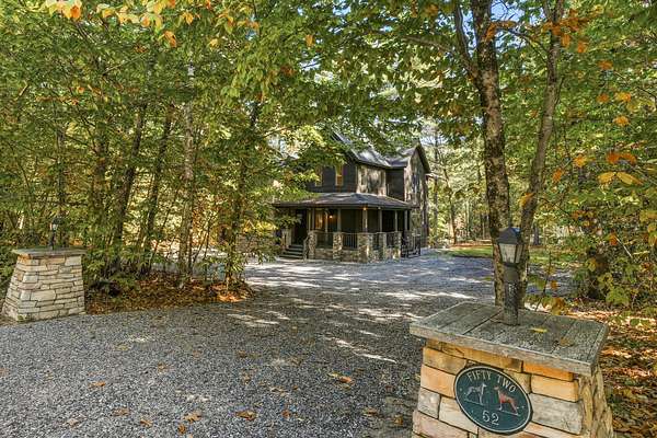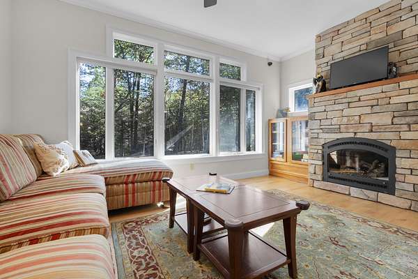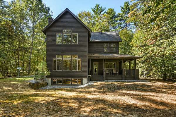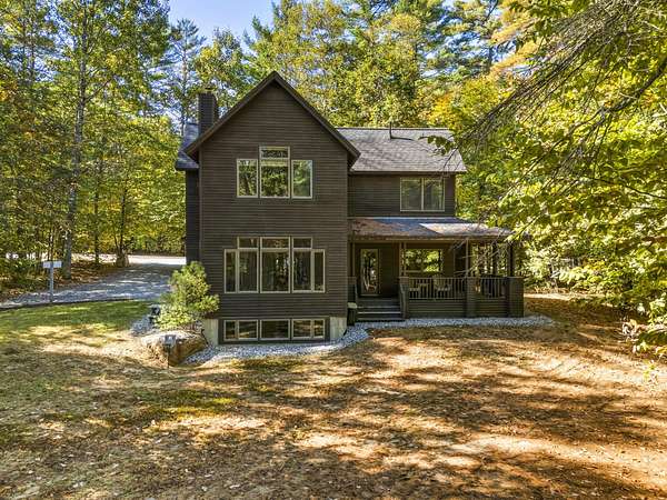 Tucked away is a peaceful woodland, this custom-built luxury home offers a rare blend of rustic charm and refined design. The cozy stone and wood exterior sets the tone for a tranquil retreat, with multiple walking paths meandering through the trees alongside Bear River, past glacial boulders, a handcrafted wooden bridge, and a fire pit perfect for gathering under the stars. Enjoy private waterfrontage and newly refreshed landscaping, including a top-coated driveway for a smooth arrival. Inside, the home is bathed in natural light from abundant windows and showcases striking wood features, a grand entry staircase, and detailed trim throughout. The large open-concept kitchen with rich wood cabinetry flows seamlessly into a formal dining room anchored by a custom stone gas fireplace. The primary bedroom offers a mantled gas fireplace and built-in storage, creating a cozy and elegant sanctuary. A fully finished basement adds versatile living space, and furnishings are included for a turnkey experience. Located on a publicly maintained road a stone's throw from Waterford Town Beach, hiking trails, and downtown Harrison, with Bridgton only 10 minutes away, and Bethel, Conway, and the Portland Jetport all within easy reach, this property is a perfect blend of natural beauty, thoughtful craftsmanship, and effortless convenience. Could make a great luxury office space, retreat center, or private residence.