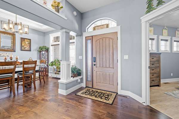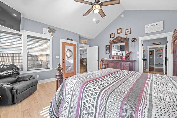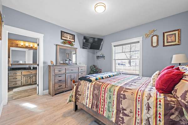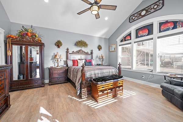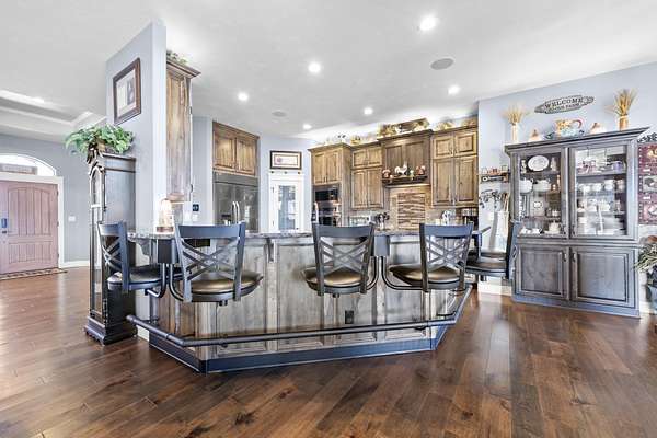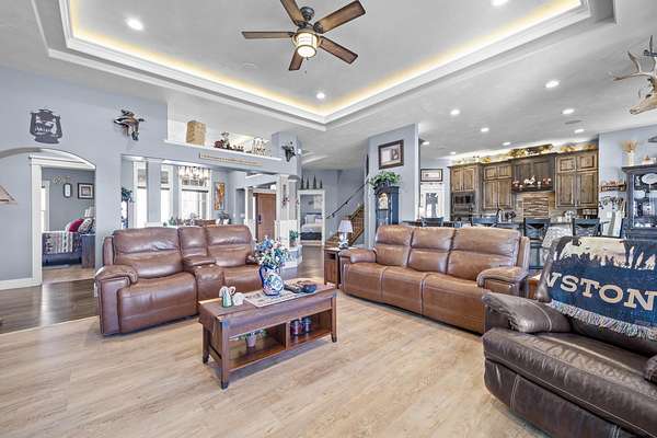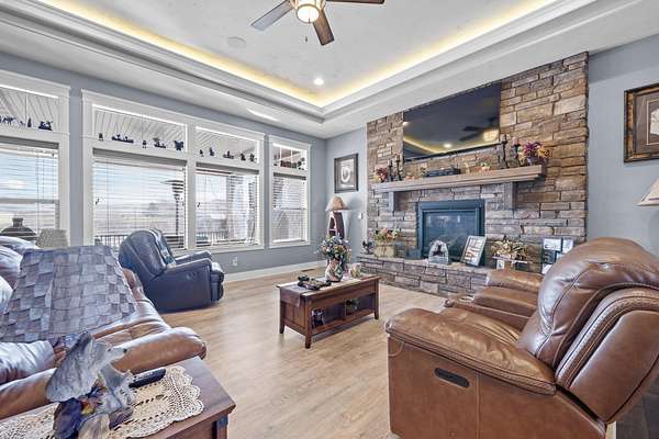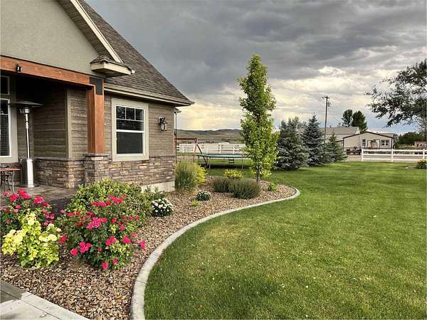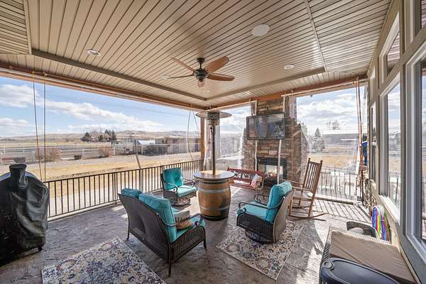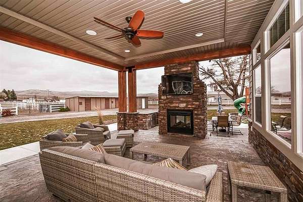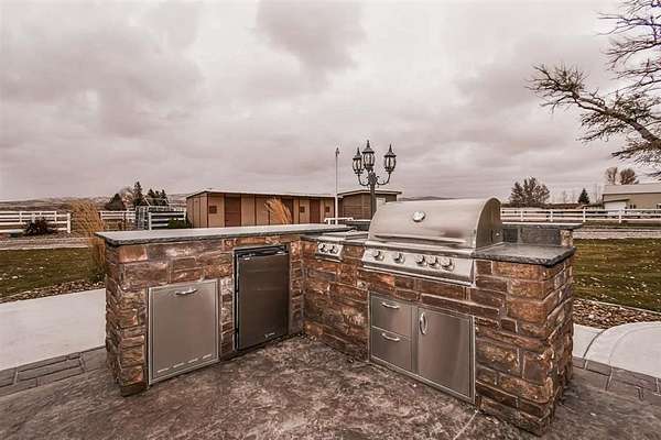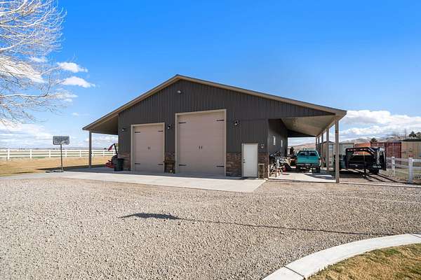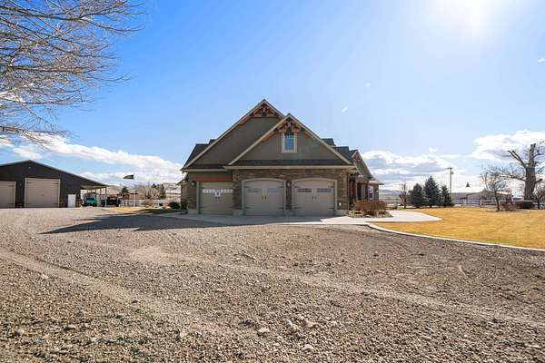 Experience the perfect blend of space, comfort, and Idaho country living with this exceptional 10-acre property. Featuring a massive 46x60 shop, multiple corrals, outbuildings, and room to grow, this property is ideal for those searching for Idaho homes with acreage, horse property, or rural living opportunities. Inside, the open-concept home offers 10-ft ceilings, crown molding, tray ceilings, granite countertops, and custom built-in cabinetry throughout. The kitchen features a large center island, corner pantry, and oversized breakfast bar overlooking the living area--perfect for entertaining. The private primary suite includes a vaulted ceiling, patio access, spa-style bath with jetted tub, walk-in shower, dual vanities, and a massive walk-in closet. A flexible bonus room off the suite works great as an office or hobby space. The main level offers three additional bedrooms, two full baths, mudroom, built-in desk, and laundry room. Upstairs features a spacious living area, theatre room, bedroom, and full bath. Enjoy the covered patio with double-sided fireplace, outdoor bar, mounted TV, and sweeping property views. The back 5 acres are divided into four 1.25-acre lots, offering added investment or expansion potential.