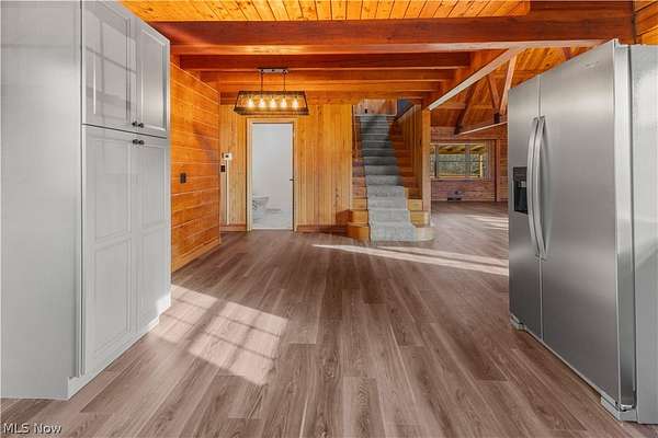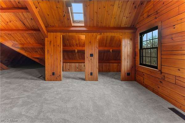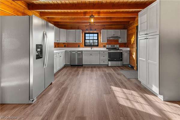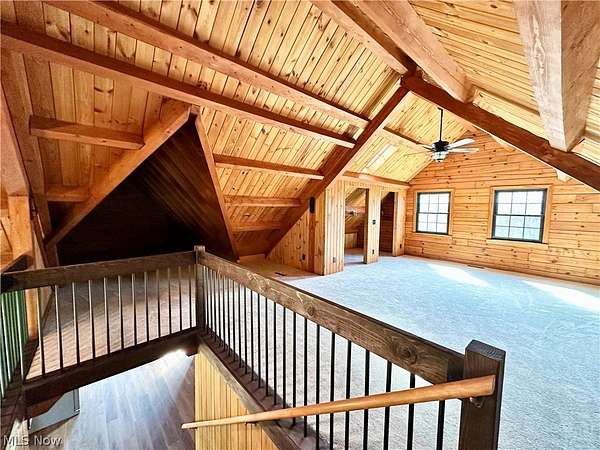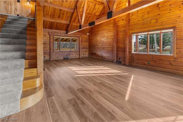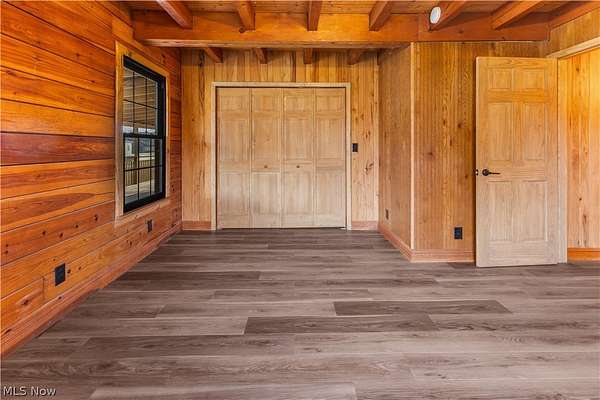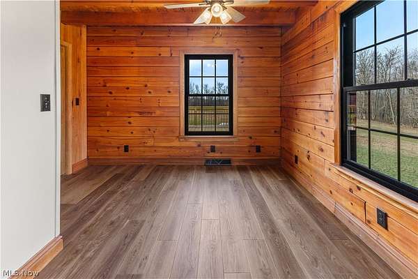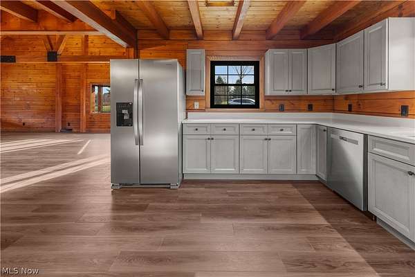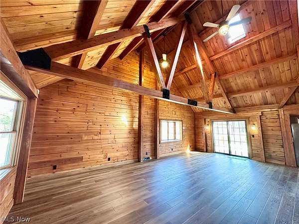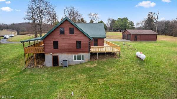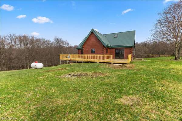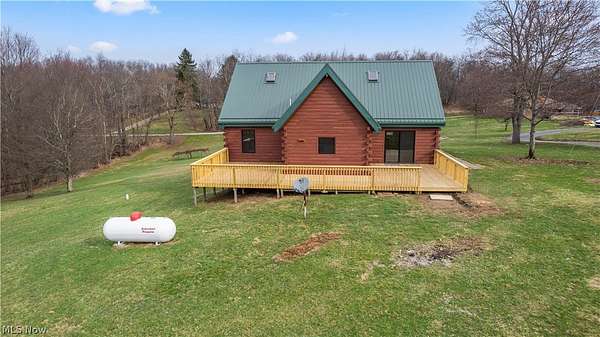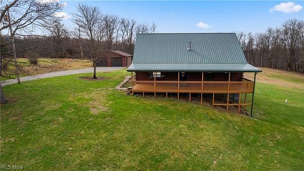 Escape to the beauty of country living with this gorgeous, remodeled 1.5-story log home nestled on over 2 private acres surrounded by woods. Full of charm and character, this property offers the perfect blend of rustic style and modern updates like a new metal roof, while providing peaceful surroundings and endless possibilities for outdoor living. Step inside to find brand new high-quality flooring throughout and a stunning, completely remodeled eat-in kitchen featuring beautiful granite countertops, stainless steel appliances, and modern finishes that make it both stylish and functional. The updated full bathroom has been completely renovated, offering a fresh and contemporary feel. The spacious living room is the heart of the home, showcasing stunning cathedral ceilings with exposed beams that highlight the classic log construction. Above, a lofted third bedroom overlooks the living room, creating a unique and open atmosphere. The main floor also includes two comfortable bedrooms, providing convenient one-level living if desired and both offering attractive views of the great outdoors. Outside, enjoy the privacy and space of over 2 acres of partially wooded property, perfect for relaxing, entertaining, gardening, or exploring. The property also features a matching detached two-car garage, offering plenty of room for vehicles, storage, or a workshop. If you're looking for a home that combines rustic character, modern updates, and peaceful surroundings, this beautiful log home is a rare find.