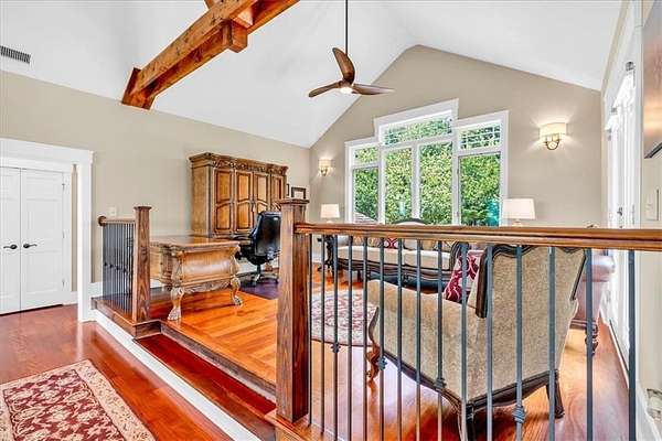 The MAIN-LEVEL living room is highlighted by a floor-to-ceiling stone fireplace with gas logs and framed by picture windows showcasing the SCENIC backdrop. The owner's suite is also on the main level, offering mountain views and a luxurious en-suite with HEATED tile floors throughout the bathroom and California closet, a freestanding soaking tub with views of the mountains, tile shower, and custom vanity with generous storage. A private office with custom wood-paneled walls and built-ins, plus a mudroom and laundry area off the side entry, complete the main level. UPSTAIRS, a cozy loft offers mountain and seasonal water views. Two guest bedrooms each feature private, updated en-suite baths. The LOWER LEVEL includes a fourth bedroom with views and deck access, an additional updated full bath, a spacious den with a dramatic wall-to-wall stone fireplace, a game room with wet bar, a gym, and a media room that can serve as a fifth bedroom. Two oversized storage rooms provide abundant space for seasonal decor and more. This BEAUTIFULLY landscaped home is part of a DESIRABLE community with access to a pool, tennis courts, and clubhouse--perfect for those seeking LUXURY, COMFORT, and VIEWS at every turn--and it's less than 5 minutes from I-75 and approximately 10 minutes to the Park Marina, Allatoona Beach, Lakepoint Station, and Red Top Mountain State Park. The home is also equipped with a whole-house generator, providing peace of mind during power outages. DON'T MISS your chance to tour this beautifully remodeled home--featuring stunning updates throughout, including the kitchen, bathrooms, closets, mudroom, shiplap walls, and so much more. Come see it for yourself and fall in love with all the fresh, modern touches!