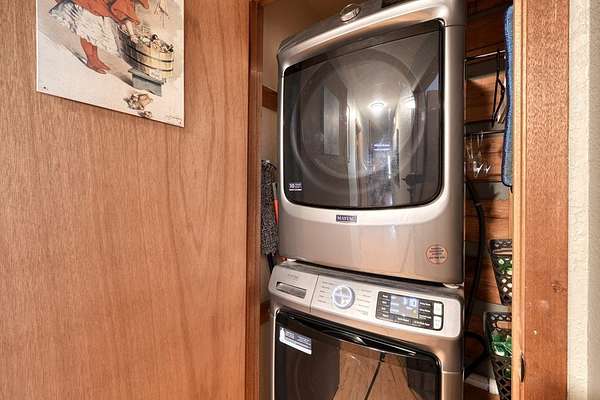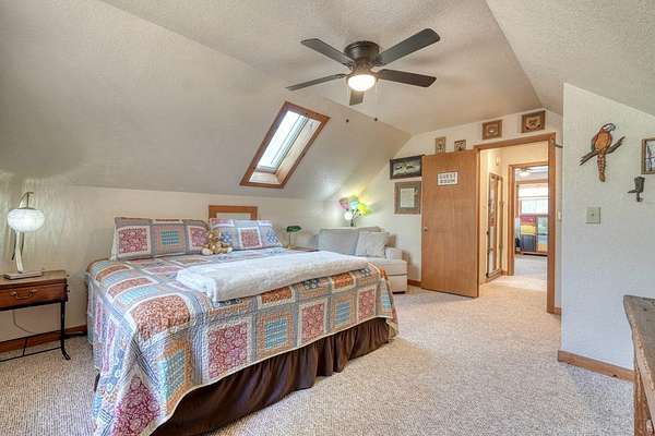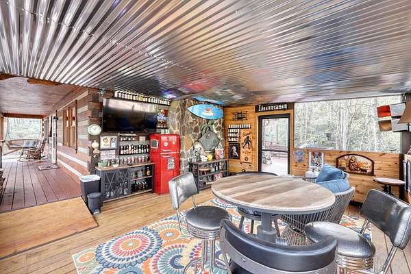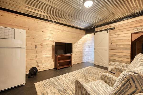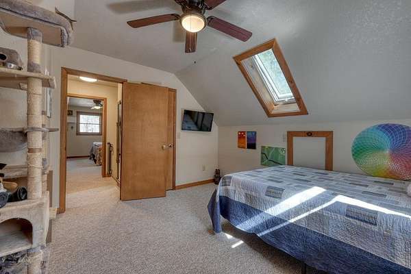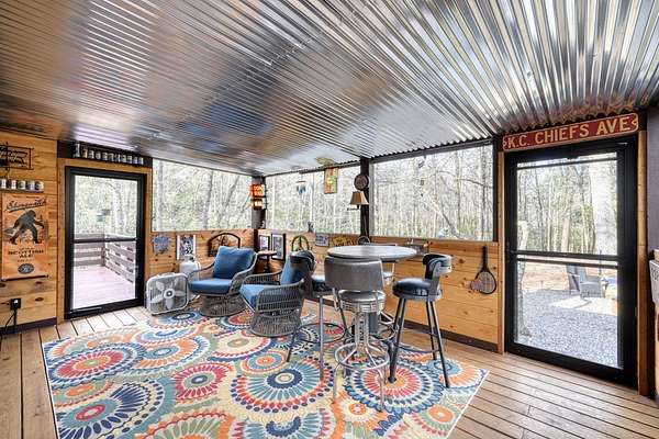 - Ceiling Fan(s), Laundry On Main, Partially Furnished, Primary On Main, Skylight, Solid Surface Counters, Vaulted Ceiling(s), Washer/Dryer Connection, Window Treatments, Wood Ceiling(s), Wood Walls