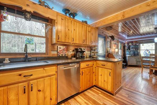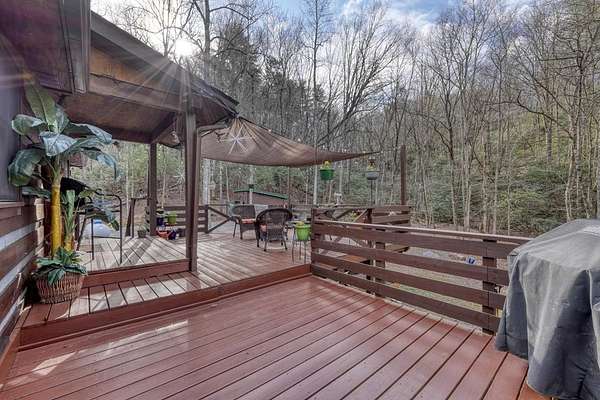 Discover your private mountain oasis at 520 Farmers Dr, Murphy, NC - a beautifully updated 3-bedroom, 2-bathroom home on over 10 acres of unrestricted land. A sparkling creek winds throughout the property, offering peaceful sounds and opportunities for relaxation or simply enjoying nature. With no restrictions, this expansive property gives you the freedom to garden, build, or create your perfect retreat. This turn-key home has been lovingly maintained with countless upgrades that make it truly move-in ready. Inside, modern comforts abound: a fully remodeled kitchen with new appliances, a refreshed main-floor bath, and a completely updated upstairs bathroom. High-efficiency mini-split systems ensure year-round comfort, while new skylights brighten every space. The living and dining areas feature stunning new tongue-and-groove ceilings and a cozy fireplace - ideal for relaxing evenings or hosting friends. New washer and dryer, fresh carpet on the stairs and upstairs, updated baseboard heaters, and brand-new front and back doors complete the interior refresh. Step outside to the expansive updated deck, an ideal great entertaining area for gatherings and cookouts. Generous garage space includes new doors and a convenient 30-amp outdoor plug, perfect for projects or hobbies. A brand-new 12x12 shed provides extra workshop area and storage, while the new retaining wall and steps along the driveway improve curb appeal and access. Fresh exterior siding and trim, a brand-new roof, and new garage doors round out the upgrades. The home also receives regular professional pest control and annual carpenter bee treatment for peace of mind. This property boasts too many upgrades and special areas to list them all, every detail thoughtfully enhanced for comfort, function, and charm. Whether you seek a peaceful full-time residence, weekend getaway, or versatile land with room to grow, this property delivers! Don't miss this rare opportunity—schedule your private showing today!