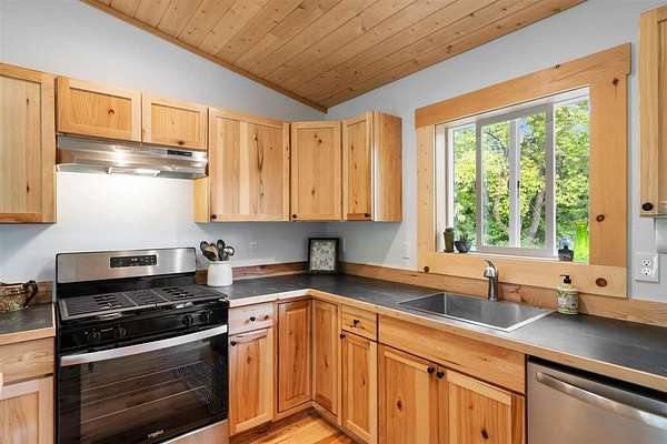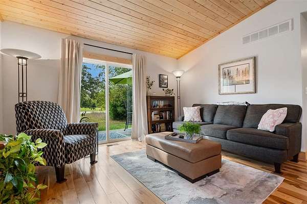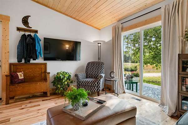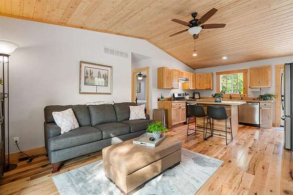 Whether a forever home or a getaway cabin, this new home is maintenance free....Experience the best of country living in this super cute new construction home, completed in fall 2023, nestled on approximately 2.5 acres of peaceful, private land. This light-filled single-story home feels remarkably spacious thanks to vaulted ceilings and an abundance of windows that flood every room with natural light making this home feel larger than its square footage suggests. Beautiful pine wood ceilings and rich hickory flooring that flows through the living room, dining room, and kitchen, creating warmth and elegance throughout. The kitchen has an amazing amount of space and a nice layout, featuring classic hickory cabinetry paired with modern stainless steel appliances - designed for serious cooking and entertaining. Thoughtfully designed bathrooms showcase luxury vinyl flooring and solid surface countertops, providing both durability and style. Enjoy great outdoor living with a slider leading out to a quaint front deck and a nice-sized back deck, perfect for relaxation. A convenient storage shed handles all your practical needs. The setting offers ultimate privacy and endless possibilities for expansion, gardens, or simply enjoying your own private sanctuary. Enjoy the tranquility of country living while remaining conveniently close to Petoskey and Harbor Springs for shopping, dining, and recreation. This newer home combines modern construction quality with timeless design elements in a setting that offers both peace and accessibility. Pella windows, a high-efficiency furnace, and extra insulation contribute to year-round comfort and low utility costs. Natural gas is in the neighborhood and easily installed. Don't miss this rare opportunity to own a stunning new home on 2.5 private acres. Schedule your showing today! Link to virtual tour--> https://my.matterport.com/show/?m=BDbptCkNHno&mls=1