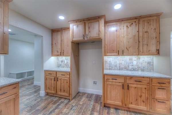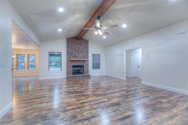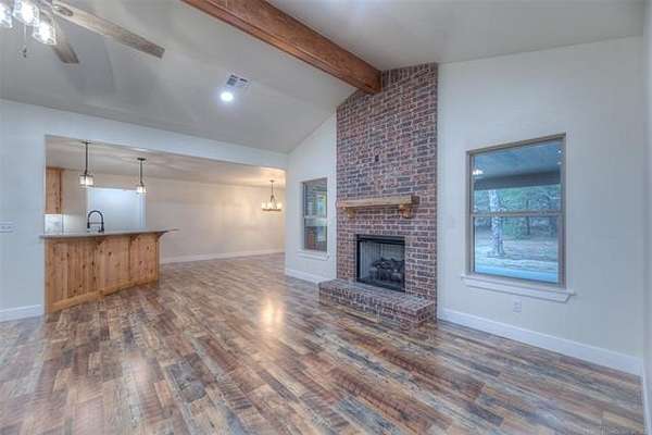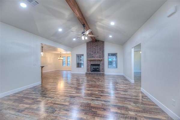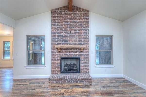 Beautiful new construction offering 4 bedrooms, 2 bathrooms, and timeless full-brick construction. Step inside to an inviting living room featuring a stunning floor-to-ceiling fireplace that serves as the focal point of the space. The kitchen showcases custom knotty alder cabinetry, neutral finishes, and LED under-cabinet lighting that adds both warmth and functionality. The primary suite offers a spacious closet with custom built-ins for added organization. A large covered back patio provides the perfect spot to relax or entertain while enjoying the privacy of a vacant, treed lot behind the home. With quality craftsmanship, stylish finishes, and a peaceful setting, this home offers the perfect blend of comfort and modern design.