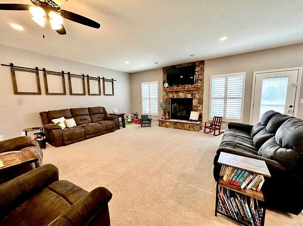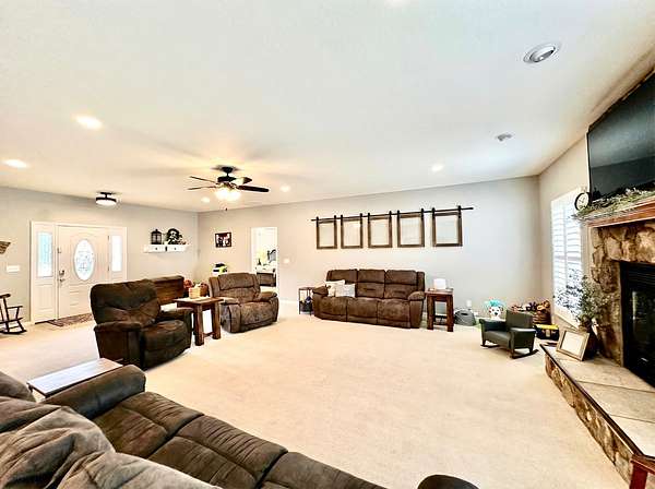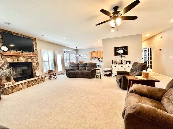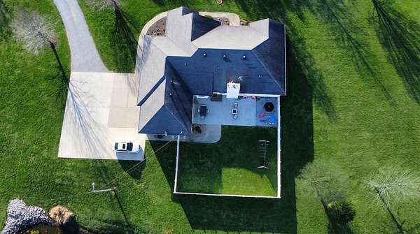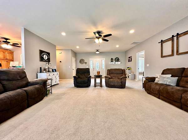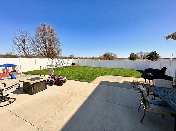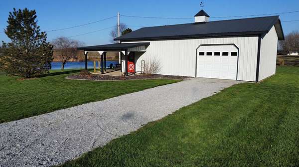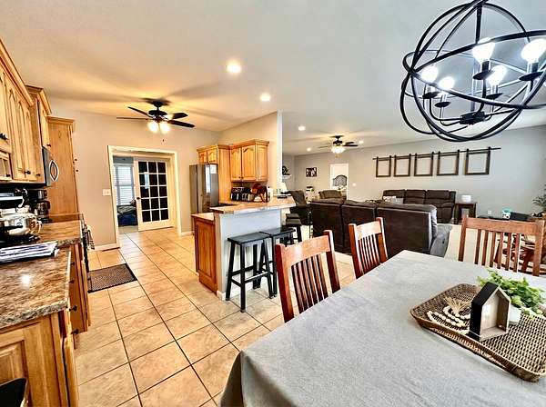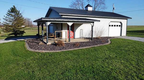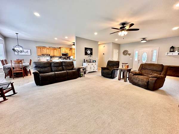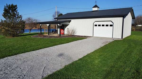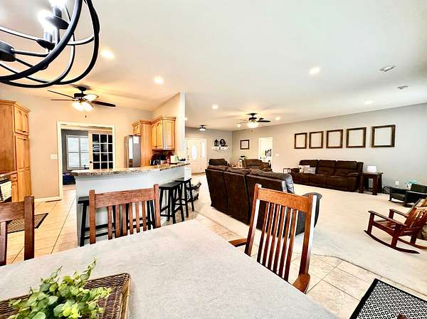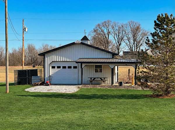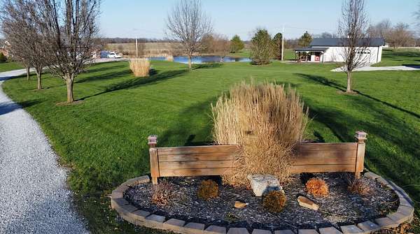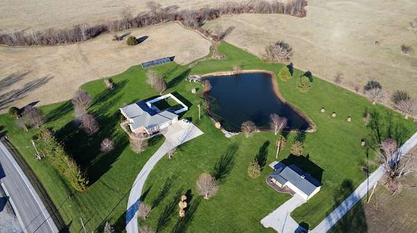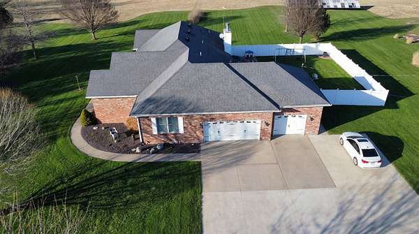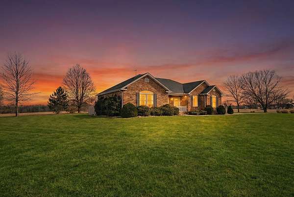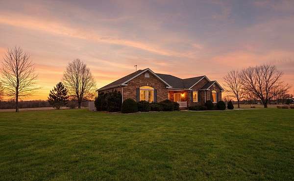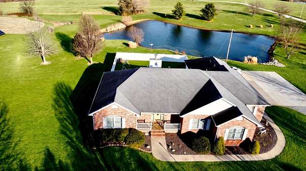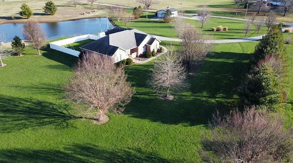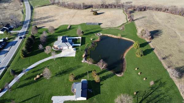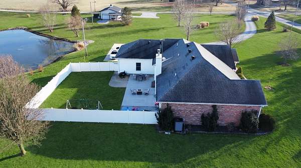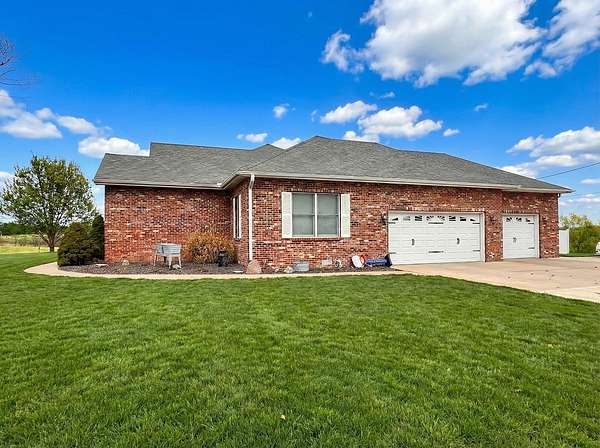 If you have been looking for a country home with acreage, privacy, and modern updates in Dix, Illinois, this beautifully maintained property is one you will want to see in person. Situated on 9.23 acres, this three bedroom, two bathroom home offers space both inside and out with a setting that truly captures peaceful Southern Illinois living. The manicured yard, mature landscaping, and stocked half acre pond create an inviting first impression and a property you can enjoy year round. Step inside to an open floor plan featuring nine foot ceilings throughout along with tray ceilings in the living room, primary suite, and bonus room. The bonus room with French doors provides excellent flexibility and works perfectly as a home office, sitting room, playroom, or additional living space. The spacious living room is centered around a beautiful stone gas log fireplace and flows naturally into the kitchen and outdoor entertaining area. The kitchen offers custom solid wood cabinetry, pull out shelving, and breakfast bar overlooking the newer patio and backyard, making it ideal for gatherings or everyday living. The split bedroom layout provides privacy, with an enormous primary suite featuring dual walk in closets, separate vanities, a whirlpool tub, and a separate shower. Two additional bedrooms are generously sized with great closet space. Outdoor features make this property stand out. The home includes a 972 square foot attached three car garage, new patio and privacy fence, and a 24 by 40 shop with two overhead doors offering excellent space for equipment, hobbies, or workshop use. The shop also has a covered porch which is perfect for enjoying the views. Stocked 1/2 acre pond will bring days of joy. Approximately four acres are open and could easily be used for pasture, hay production, recreation, or a future building site. Numerous updates add long term value and efficiency including custom plantation shutters installed in 2021, high efficiency furnace in 2021, heat pump air conditioning unit installed in 2025, and a solar array added in 2019 resulting in very low utility costs. Additional improvements include expanded driveway and parking area, professional landscaping and patio addition, French drain system, electric service and driveway added to the shop, fresh interior paint, updated lighting, and built in wood blinds that open for full views. The property also features established garden areas including an impressive asparagus bed, creating an ideal setup for anyone interested in gardening, sustainability, or simply enjoying country living with room to grow. Located within the highly sought after Rome School District, this property offers the added benefit of a well regarded local school system while still providing the space and privacy of country living. Homes offering acreage, outbuildings, updates, and move in ready condition like this are rarely available in the Dix area. Schedule your private showing to experience everything this exceptional Southern Illinois property has to offer