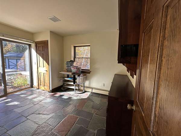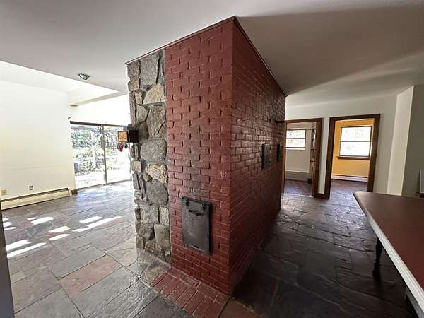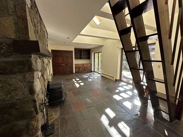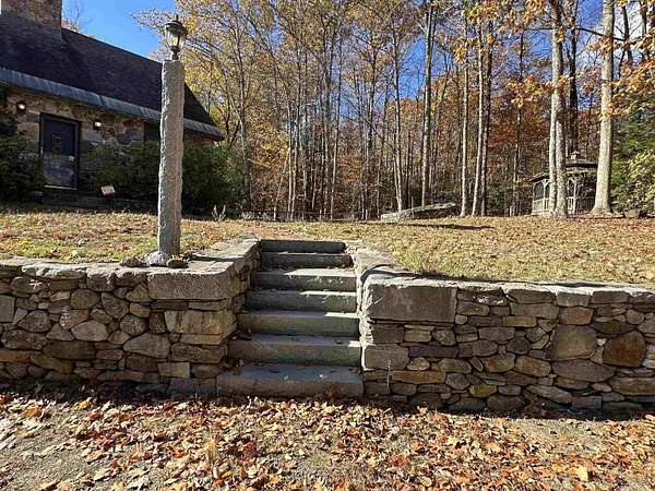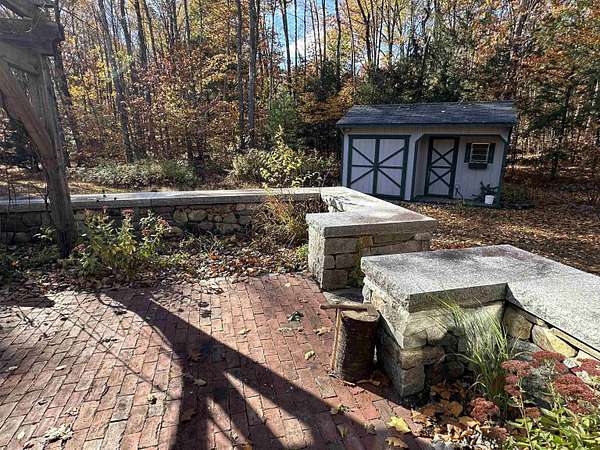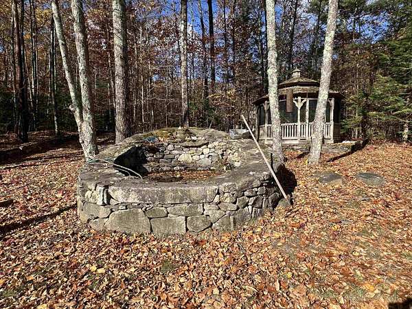 OFFERS ARE BEING REVIEWED WEDNESDAY 11/26 AT 4:00PM Privately nestled off North Street in Jaffrey, New Hampshire, this extraordinary two-bedroom, two-bath stone home offers timeless charm and serene privacy. Meticulous stone walls frame the front and line the driveway, where handcrafted stone steps lead to the entrance. A tranquil round stone water feature sets the tone for the craftsmanship found throughout. Outdoor spaces invite relaxation: a south-facing brick and granite patio sits beneath a wood pergola, surrounded by lush perennial gardens. A screened gazebo with power offers a peaceful retreat, while a powered shed and a handcrafted workshop/garage--built from logs harvested on-site--add rustic utility, complete with a wood stove hookup. Inside, slate and tile floors complement natural textures. A distinctive Russian fireplace and two additional fireplaces--one with a wood stove--create cozy ambiance. Skylights brighten the intimate living room, which features built-ins for added charm and function. A spacious heated family room welcomes you, and two additional rooms--a den and an office--offer flexible space for work or hobbies. Tucked discreetly away from view, the home's layout ensures privacy and quiet. This is not a home for drive-byes--it must be experienced in person to appreciate its craftsmanship, character, and peaceful setting. A one-of-a-kind retreat waiting to be discovered.