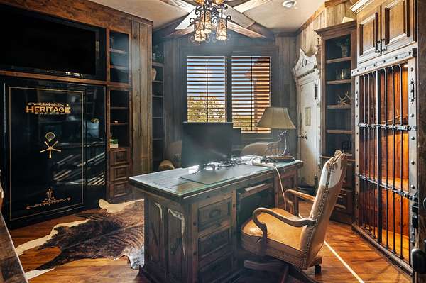 The property's amenities are unrivaled in scope and quality, encompassing multiple luxury residences, a lighted tennis court, a fully equipped fitness center, a racquetball court, a spa, a dedicated 2,400 sq. ft. game room, and premier equestrian facilities. A portion of the ranch is enclosed by high fencing, offering exceptional hunting opportunities and intimate wildlife viewing experiences. The land also supports abundant seasonal waterfowl and dove, while scenic riding trails wind throughout the property's diverse terrain. Productive pastures and generous water resources lend the ranch both functional versatility and a tranquil, park-like atmosphere that is increasingly rare this close to a major metropolitan area.