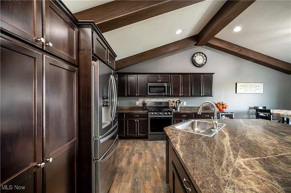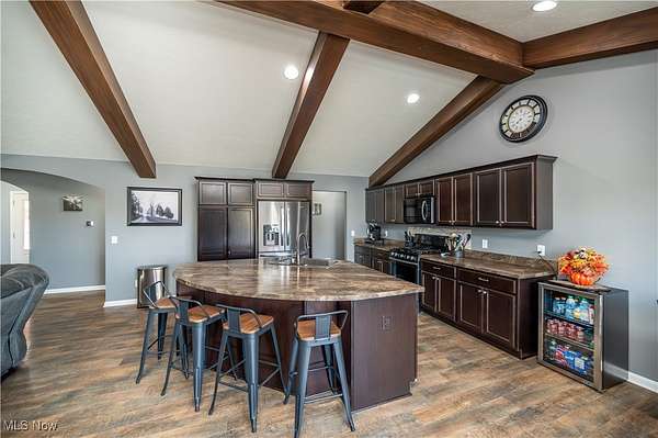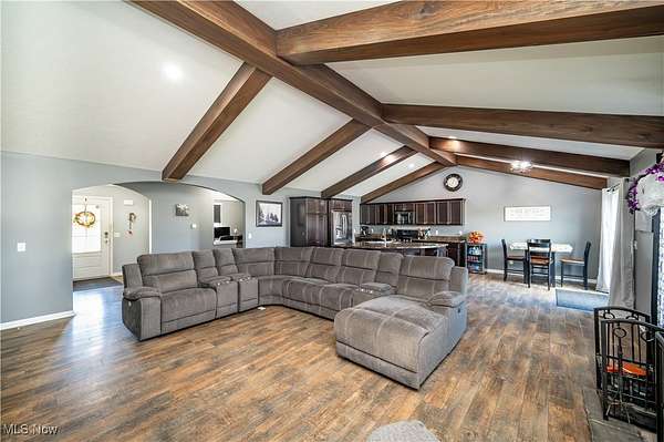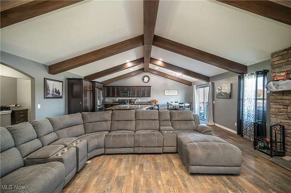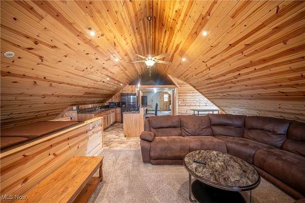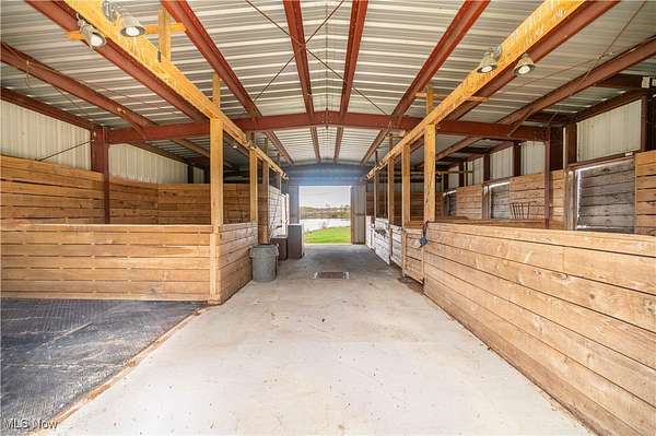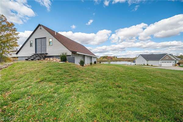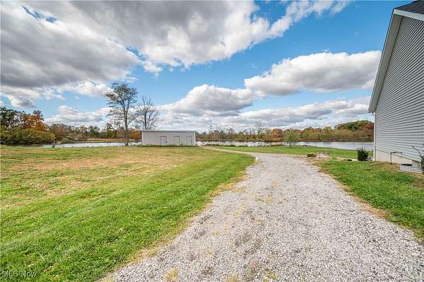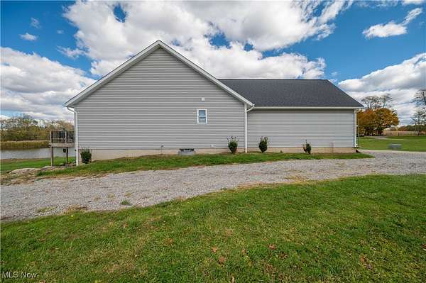 Experience the perfect blend of luxury, comfort, and country living with this stunning lakefront ranch set on nearly 11 acres of serene landscape and FREE GAS! Enjoy a private lake, a 36x40 5-stall horse barn, and endless views of nature from every angle. Inside, the home welcomes you with a massive open great room featuring exposed beams and a breathtaking floor-to-ceiling stone fireplace. The spacious eat-in kitchen offers the ideal gathering space with a cozy breakfast area overlooking the water. The primary suite includes a private ensuite bath and walk-in closet, while two additional bedrooms sit on the opposite side for added privacy. A first-floor office and laundry room add everyday convenience. Step outside onto the expansive back deck and take in the panoramic lake views-perfect for relaxing or entertaining. The full walk-out basement provides endless potential for a recreation room, gym, or workshop. 2 car attached garage! An additional parcel offers a beautifully finished 32x48 three-bay garage with an upper loft, full kitchen, and bathroom-perfect for use as a guest house, in-law suite, or creative retreat. This property truly has it all-space, privacy, beauty, and functionality. Schedule your private tour today and experience this extraordinary lakefront retreat for yourself!