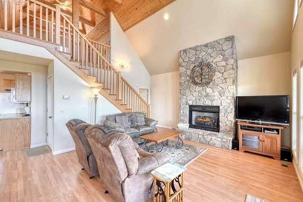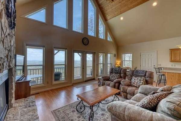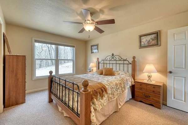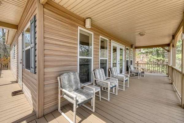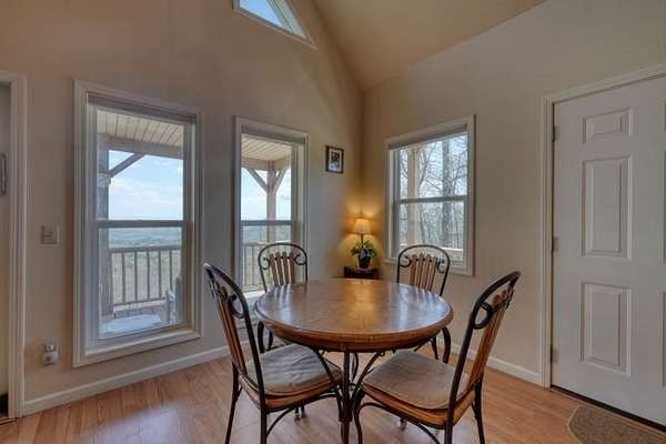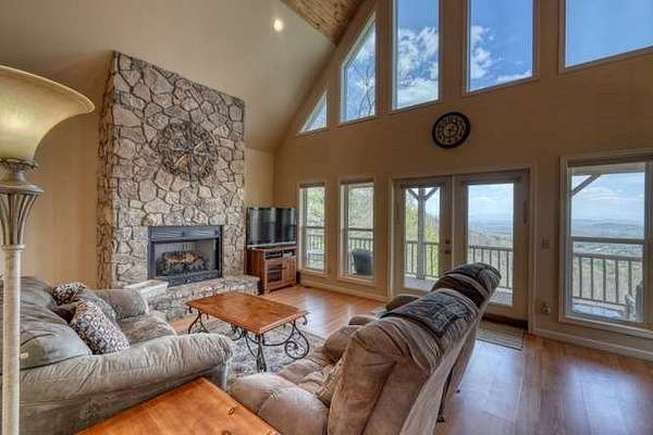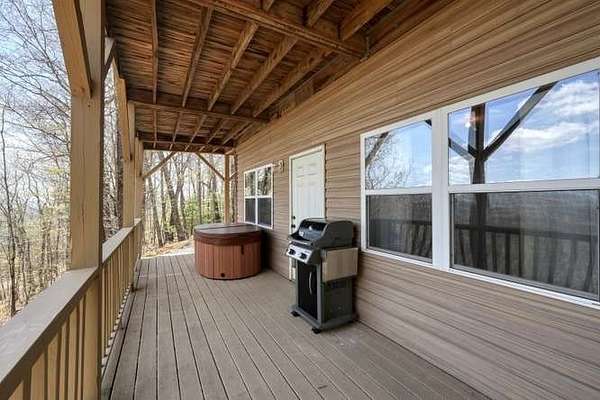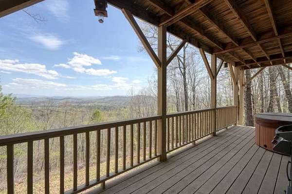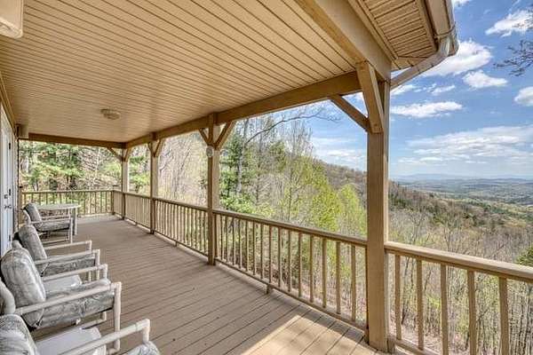 THE KIND OF VIEW PEOPLE MOVE FOR! From the moment you step inside, the wall of windows draws your eye across an endless sea of mountain ridges, creating the feeling of living above the clouds. Start your mornings with coffee on the deck, unwind in the hot tub under the stars, and enjoy music flowing from the living room stereo to the outdoor deck speakers. In summer, enjoy the rare treat of watching July fireworks rise above the trees from your own porch. Offered fully furnished and completely turnkey, this beautifully maintained one-owner home was built by a reputable builder and is ready to enjoy from day one. Everything stays—furniture, dishes, tools, pool table, and more—making it ideal as a full-time home, second home, vacation getaway, or rental opportunity. The main level features a warm and inviting great room with a gas log fireplace, an ensuite primary bedroom with walk-in closet and walk-in shower, main-level laundry, and a half bath for guests. Upstairs, the loft bedroom offers a cozy guest retreat with its own full bath, walk-in shower, walk-in closet, and incredible mountain views. The finished lower level adds even more room to relax and entertain, complete with the pool table, a full bath with tub/shower combo, attached garage, and easy access outside. The private well is not shared with neighbors and offers fresh-tasting water with strong pressure—an everyday luxury mountain buyers will appreciate. Located in Indian Rock Springs, this home also offers neighborhood trails and is conveniently positioned about 20 minutes from both Blue Ridge, GA and Murphy, NC, putting you close to shopping, dining, entertainment, and outdoor adventure.