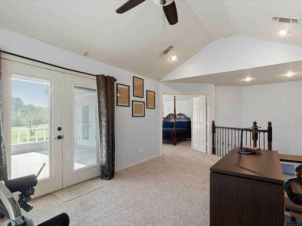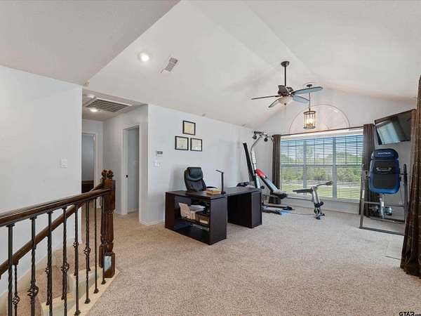- Blinds, Ceiling Fan, Satellite Dish, Smoke Alarm, Vaulted Ceilings