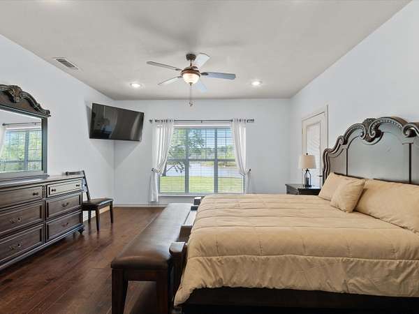 This beautiful, immaculate property is the sanctuary that offers unparalleled privacy, waterfront views, and breathtaking natural beauty. This 21.811 acre estate overlooks Lake Bob Sandlin and is less than 5 minutes from Lake Cypress Springs. In addition, this property has access to the adjacent 15-17 acre private lake which is home to ducks, fish, turtles, and geese. A portion of this private lake is included in the acreage! Enjoy the best of both worlds: boating and fishing on Lake Cypress Springs and Lake Bob Sandlin which are just minutes away as well as the tranquility of the private lake just steps from your back door. This is the lifestyle upgrade you have been waiting for! This 2,780 square foot meticulously maintained home features TWO PRIMARY bedroom suites (one upstairs and one downstairs), 2 additional bedrooms, 3 and one half bathrooms, as well as 2 living spaces. The new whole house Generac generator provides peace of mind during power outages. The impeccable, park-like acreage features improved coastal hay meadows fully fenced smooth wire fencing and cross fencing. Kitchen features two ovens, granite countertops, and stainless appliances. There are appealing views from every window in the house. This property is made for those who value both recreation and relaxation. Call today to schedule your private tour of this extraordinary home and acreage!