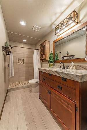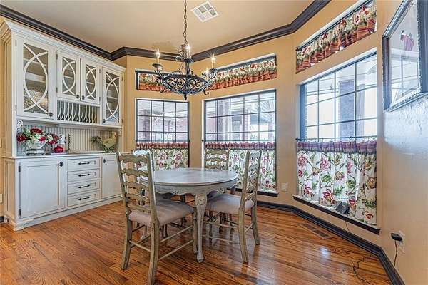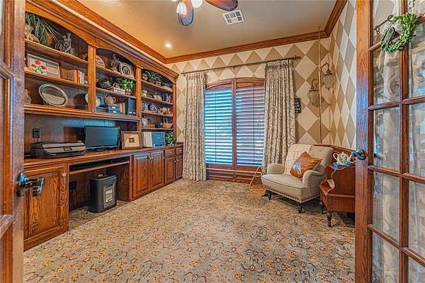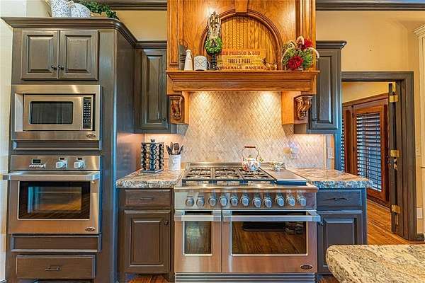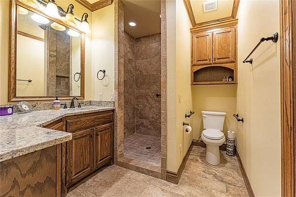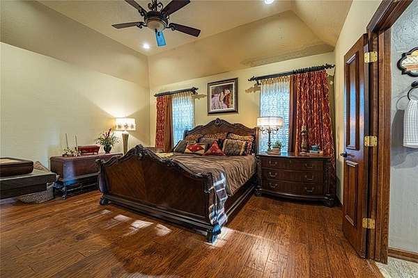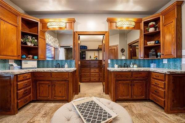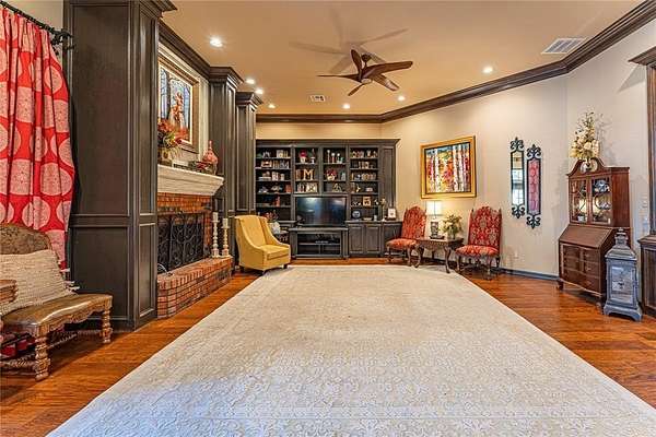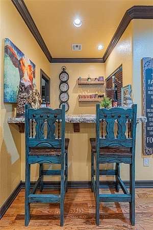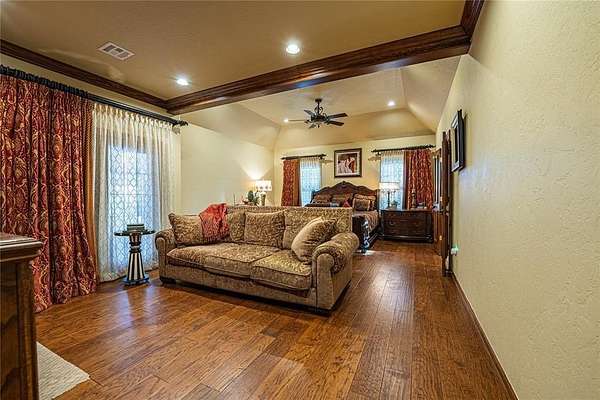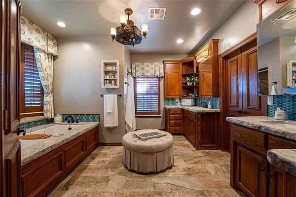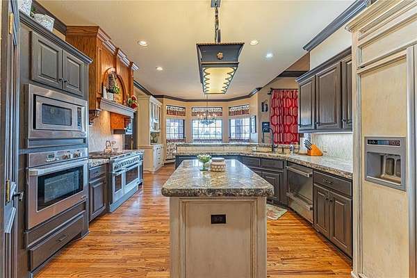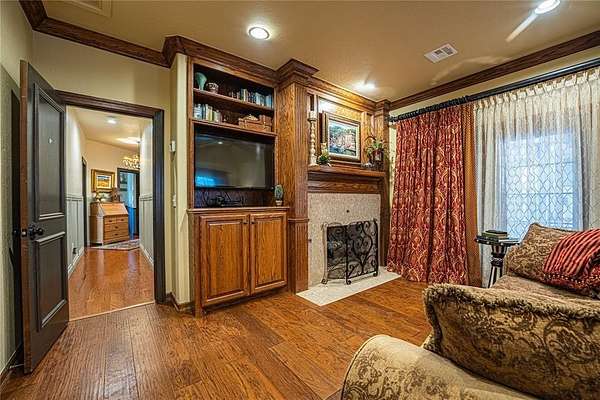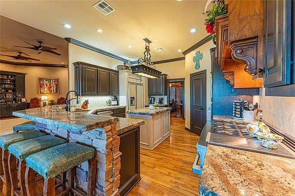 Don't miss out on this large estate with a separate guest house & finished secondary building space great for a home-based business or man cave. This stunning estate on 5 fully fenced & gated acres is in a highly desirable & convenient location, sitting just off of SW 164th between Western & Santa Fe. This location makes it very convenient to Norman, Moore & OKC - minutes from interstates, shopping & amenities but offering the tranquility of country living. The main home provides for elegant living creating a great space for entertaining with 5,123 sq feet of beautifully crafted living space featuring soaring ceilings, stunning crown molding, gorgeous granite countertops, wood floors, rich woodwork, 3 separate living spaces plus an office & dedicated sitting in the master, 3 fireplaces, a formal dining area, additional dining off the kitchen, 5 total bedrooms, including an exceptional primary bedroom that is an oversized retreat. This property also comes with its very own guest house, perfect for elderly parents, college kids, or for guests, with a beautiful functioning kitchen area with sink, dishwasher & microwave, open living & bedroom space, a wonderful adjoining bath with accessible features, granite countertops, & built-in desk. An additional room is also located in guest quarters, great for a home gym or office space, all totaling around 1,000 additional sq ft of space. (Making the total sq footage in the listing) 5 car garage plus lawn equipment bay, making lots of room for cars & toys! Step outside to your own oasis of an outdoor living space with elegant covered patios, outdoor kitchen/grilling area, firepit, & a 40,000 gallon saltwater pool with diving board, slide & separate hot tub area with waterfall. All of this with an oversized walk-in storm shelter & whole-house generator, you'll be in good hands during Ok weather. With this city acreage, multiple living areas, incredible outdoor amenities, this home is perfect for grand living & entertaining.