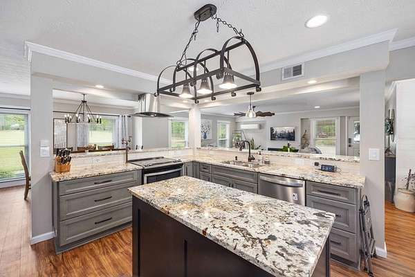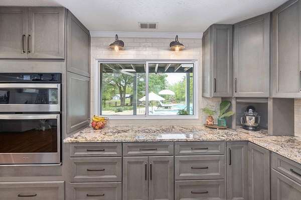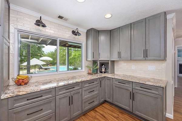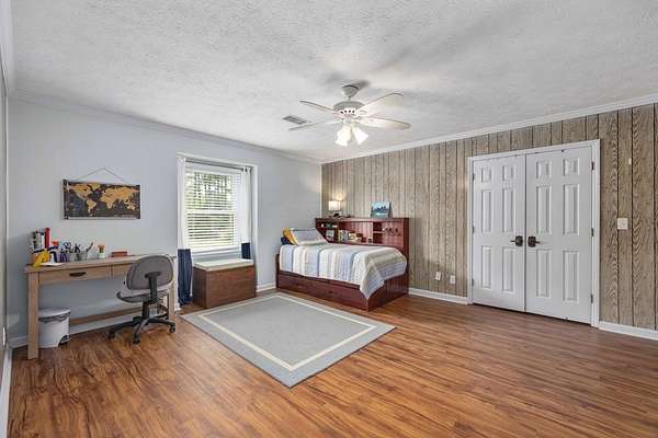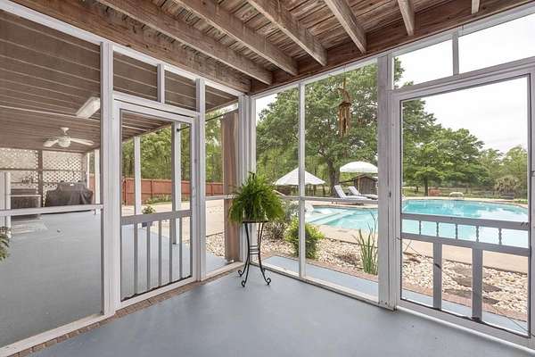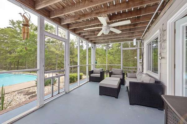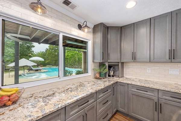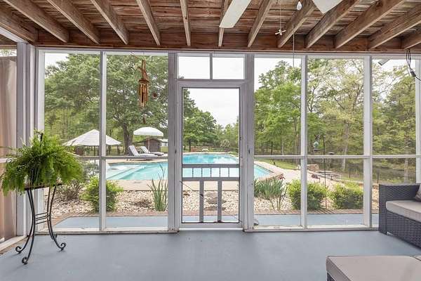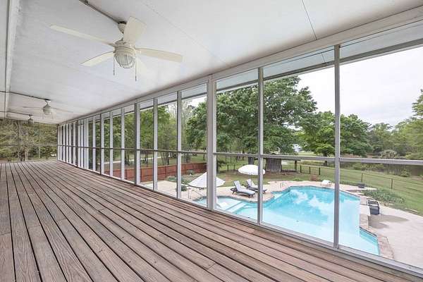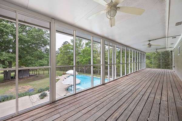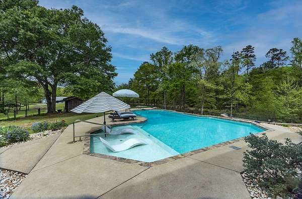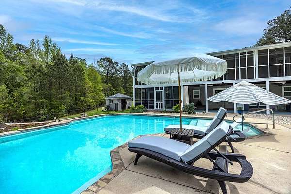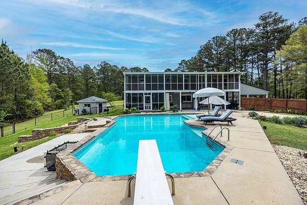 Tucked away in highly sought-after southern Harris County, this one-of-a-kind Fortson property delivers the perfect blend of modern upgrades, functional space, and outdoor living-all set on a private, scenic nearly nine-acre homesite. Extensively renovated from top to bottom, the home welcomes you with a spacious great room featuring an electric fireplace and flows seamlessly into a beautifully updated kitchen designed to impress. Enjoy high end granite countertops, custom cabinetry, tile backsplash, a pot filler, two ovens and bar seating for EIGHT-perfect for entertaining or everyday convenience. The main level also includes a large laundry room, a dedicated office or bonus space off the foyer, and the first of two master suites. This one is a fully handicap-accessible bedroom and bathroom with a tile shower. Upstairs, you'll find four additional bedrooms including a second master suite along with an additional hall bath. You will love the large game room/media room, and three different rooms with access to the massive covered, screened upper deck. Step outside and enjoy your private retreat with a gorgeous in ground pool with sun shelf and built-in umbrella anchors, a nearly 2-acre pond stocked in 2025 with bluegill, bass, and shad. Additional highlights include a tankless water heater, updated vinyl windows, and multiple HVAC systems including a mini-split for high efficiency living. The impressive 2,100 sq ft heated and cooled shop offers three garage bays, full RV hookups with septic, its own power meter, separate septic system, and a full bathroom. Three mini-split systems service the shop's office, storage, and bathroom spaces, making it ideal for business, hobbies, or extra flexibility. This property literally has every single thing for your homestead dreams. Stop what you are doing and start living this Harris County dream today!