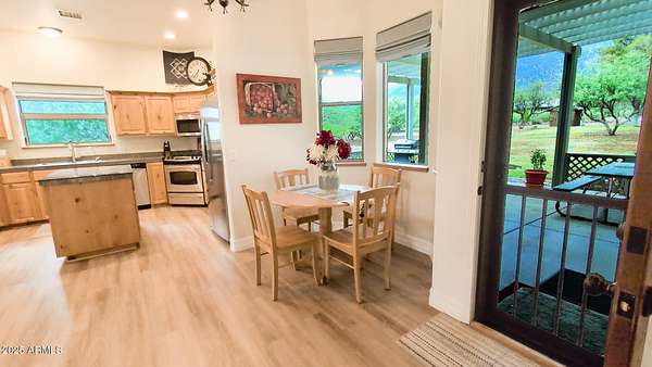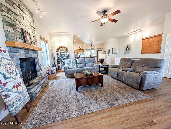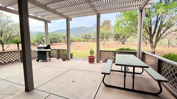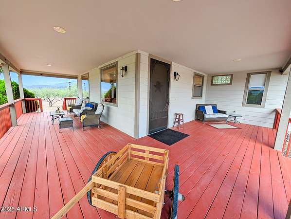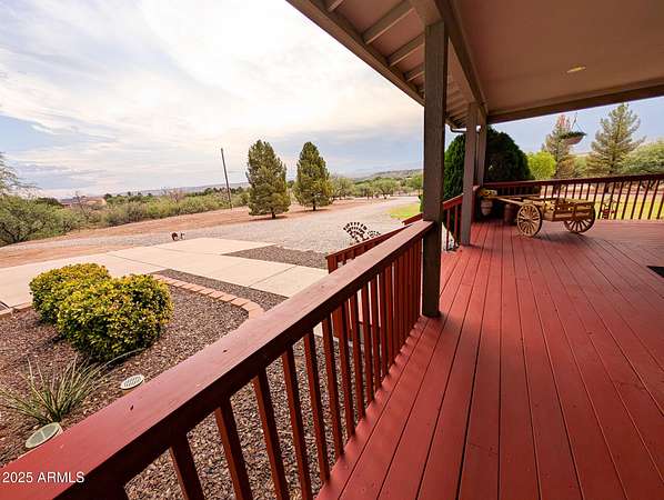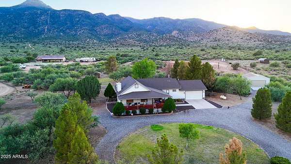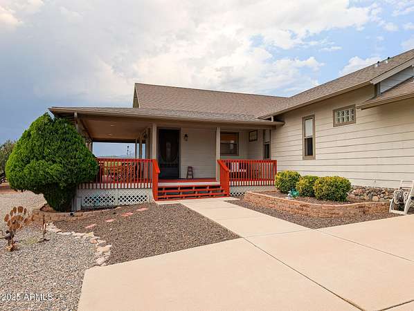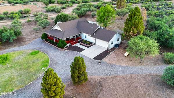 Breathtaking 360-degree views from the porches of this 2162 sq ft horse property. Fully fenced 2.3 acres with nearby access to Forest Service land. This home is a gateway to endless trails for horseback riding and ATVs. Also, close to the Verde River, ideal for kayaking adventures. No HOA. The welcoming, 3-bedroom, 3-bath home has 2 Primary Suites, and each include its own ensuite. The third bedroom also has access to a bathroom. The spacious entertainer's kitchen features knotty alder cabinets & ample storage including a separate pantry. The property includes a two-car attached garage and a separate 851 sqft garage/shop with power, perfect for all your equipment and toys. This is the ultimate retreat for those who love the outdoors. New exterior Paint. Well on premise.
