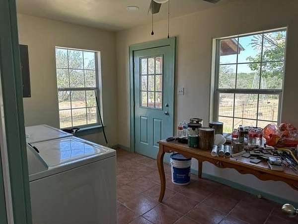 IMPROVEMENTS: The headquarters offers a fully remodeled 1,229 sq. ft. (per the Sutton County Appraisal District), 2-bedroom, 2-bathroom home with hardwood floors, wood burning stove, new appliances in the kitchen and washer and dryer in a separate laundry room. One of the spacious bedrooms includes an on-suite bathroom. Propane operates the HVAC system in the home and stove in the kitchen. One water well services the home and corals and there is a windmill and concrete tank. The property is fenced and crossed fenced, and the fences are in good condition.