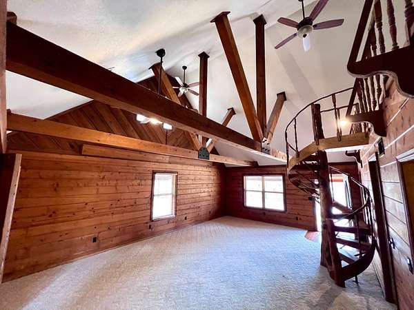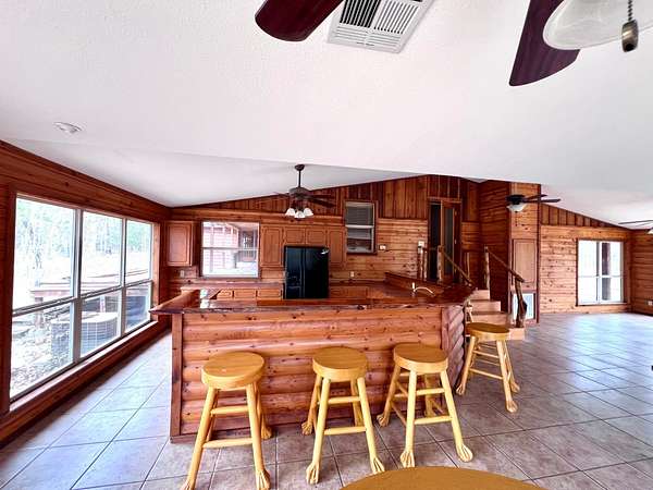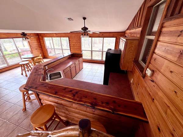 Escape to the perfect blend of comfort, efficiency, and natural beauty with this stunning, well-maintained log home nestled on 10 picturesque acres. Surrounded by mature trees for ultimate privacy, this property offers a peaceful, secluded setting while still being conveniently located just minutes from town. Boasting 3,147 square feet of living space, this spacious home features 3 bedrooms and 2 full bathrooms, designed with both functionality and charm in mind. The warm, rustic character of the log construction is complemented by modern upgrades, including an energy-efficient geothermal system (only 5 years old), ensuring year-round comfort and lower utility costs. Enjoy peace of mind with major updates already completed, including a metal roof, windows replaced just 3 years ago, and an electric hot water heater that's only 6 years old. Entertain in style with the expansive 26x42 game room addition-an incredible space designed for making memories. Whether you're hosting game nights, holiday gatherings, or casual weekends with friends, this versatile area offers endless possibilities. The room easily accommodates a pool table, lounge seating, and even a big-screen setup for the ultimate home theater experience. Adding to the charm is a large rustic bar that serves as the centerpiece of the space, complete with a sink and full-size refrigerator-perfect for serving drinks, snacks, or hosting with ease. The warm, lodge-style feel makes this area both inviting and functional. Best of all, the pool table and bar stools will convey with the property, as well as the hot tub making this entertainment space truly move-in ready and ready to enjoy from day one. Step outside and take in the beauty of your private acreage, complete with two ponds-one of which is spring-fed-providing a serene backdrop and excellent opportunities for fishing or simply relaxing by the water underneath the concrete picnic table. This rare property offers the best of both worlds: quiet country living with modern conveniences, all in a clean, move-in-ready package. Don't miss your chance to own this one-of-a-kind retreat!