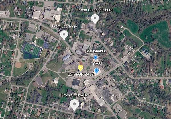 VACANT LOT! This PRIME location is available for a new build. The previous building was 5600+sf with another 5600sf walk-out basement before it was destroyed by fire. They would have never given it up, but the time to rebuild would have crushed their thriving business, so they had to relocate quickly, and not even a block away. Now, it's time to move on and move forward. You could own this absolute CASH COW especially if your new building design allowed for drive-thru on the lower level (Bell Ave side), Retail stores on the main level (Depot Ave/Main St), and residential units on a 2nd floor. Create your own perfect set-up for multi-revenue stream or design an entire building just for your business! City parking lot behind the property - 7 spaces on Depot Avenue and on-street parking on Main Street. Not only is this in the heart of the district next to City Hall, but also perfectly situated between Shelbyville, Lagrange & Campbellsburg. There is NO Doubt that this is the place to be! Your marketing budget shrinks as your new location becomes your billboard.