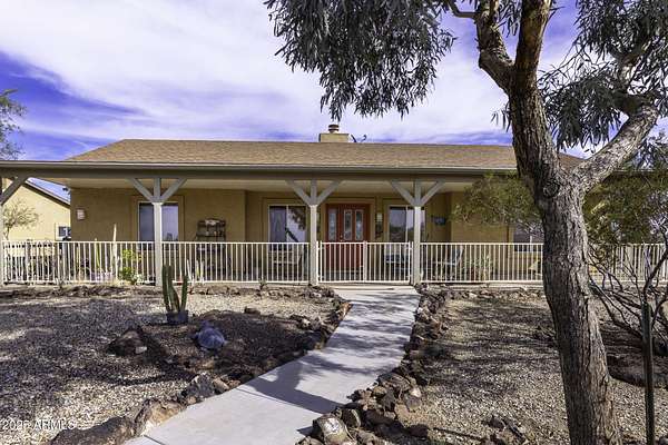 Ranch style, three bedroom, two bath home built by the current owner in 1999. Sits on just over 5 acres with a modest horse set up and room for you to build more. Completely perimeter fenced. Livestock panels convey as does the hot tub on the back porch. Detached garage workshop is large enough for your four-door long bed truck. Kitchen offers gas stove and range. Master Bath has separate tub and shower. Large Front and back porches overlooking horse property. Guest room has a built-in queen-size murphy bed ready for your winter visitors. Property includes 2 parcels: 506-09-076-J and APN 506-09-076-M. Four shares on the well and subject property is the well manager. Potential here and priced to sell.