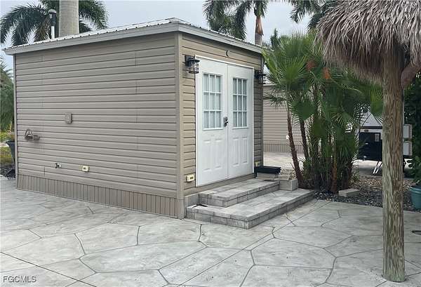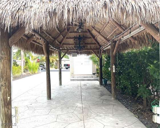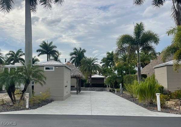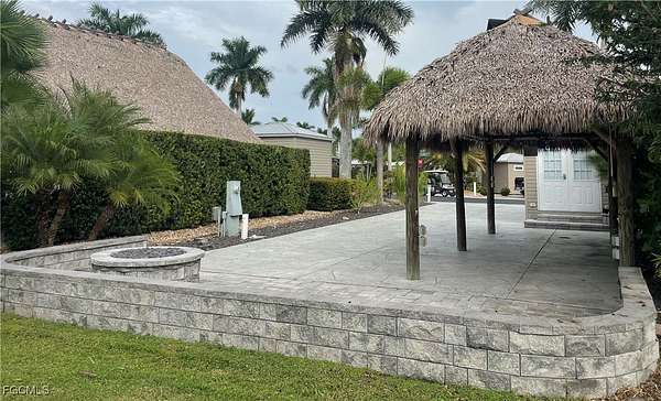 Welcome to this unique private concrete/paver east facing RV lot at Cypress Trail RV Resort, conveniently located near I-75 in Fort Myers. With perfectly setting landscaping and built-in irrigation, Lot 294 has plenty privacy. The club house is just around the corner, accessing all the wonderful amenities, like the pool, gym, laundry, library, pickleball, tennis, bocce, shuffleboard and a large ball room. This resort has so much more to offer like live music concerts, dance events, fun excursions, craft shows, and so much more. This lot includes water and sewer, high-speed internet, and over 70 cable television channels. It comes with a fully finished shed, with a 36" shower, toilet, stunning sink/vanity with drawers, a large ceiling fan/light with remote control and an AC/Heat wall unit. The painted pavement with the expanded pavers at the back makes it a large space for relaxing during your gatherings. The knee-level brick wall at the back, and the matching brick firepit makes this lot one of the most charming lots in the resort. Beneath a 25'-by-12' tiki, you can have a peaceful moment in a tropical setting with plenty privacy. This Tiki is fully powered with ambient lighting, a large outdoor ceiling fan, and a ready TV mount. Everything you need for peace of mind is available on this property Everyhting on the pictures are included and some outdoor furniture is also included (pictures not available) We hope you can make this lot your dream property as you enjoy your own slice of sunny southwest Florida.