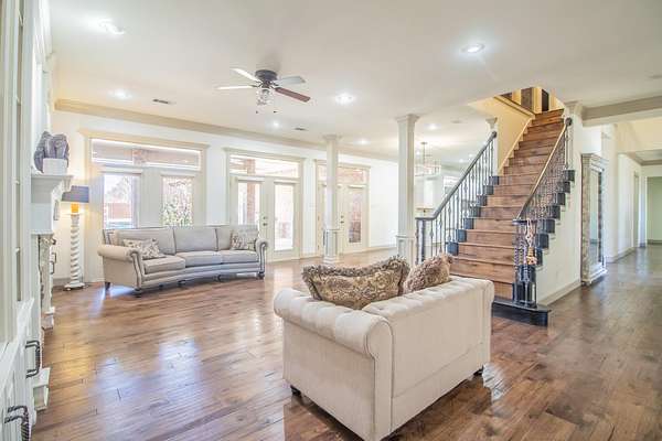 This exceptional custom home by Robert Wood offers 4 spacious bedrooms, an office, 3 full baths, 3 half baths, and a beautiful large basement. Upstairs, you'll find a private guest suite, a craft (or sewing) room, and a huge media room with a wet bar. On the main floor is the master suite with its own fireplace and massive bathroom with his and hers closets. The gourmet kitchen boasts top-of-the-line Wolf appliances and a butler's pantry with wine storage. This one of a kind property is set on 2.42 acres with 2 wells and surrounded by Pecan trees, Live Oak trees, Cedar trees, and Oak trees. The property includes a 40x60 insulated shop with four 240v plugs and many outlets. It also has a 36x37 horse barn with stalls and a dedicated paddock, making it a dream for equestrian enthusiasts and hobbyists. This home also has a 3-car garage with a dog washing station and 3 guest parking spaces. The backyard features a beautiful pergola, outdoor fireplace, a grill & bar area, and still has plenty of room for a pool. Another bonus of many is a brand new DogWatch hidden fence! Experience the perfect combination of luxury, space, and convenience in this one-of-a-kind home. Schedule to see this stunning 5,525 sq. ft. Home on 2.42 Acres today!