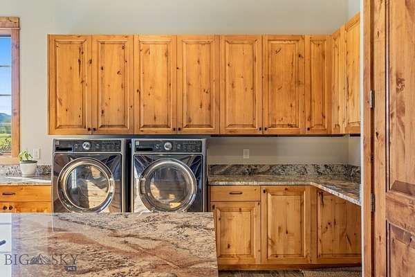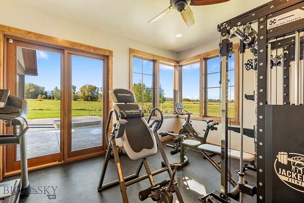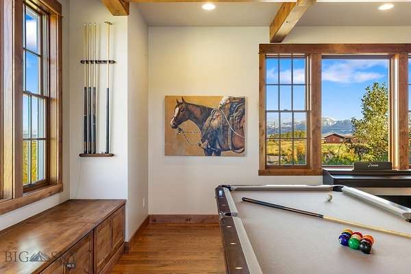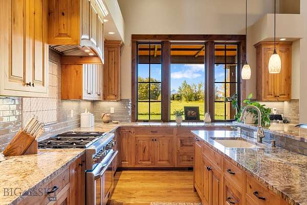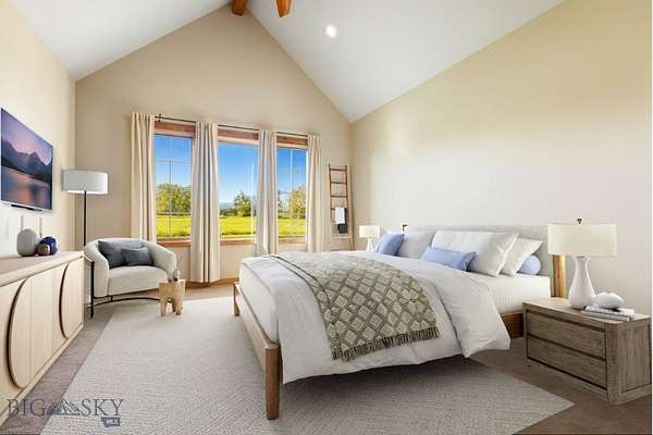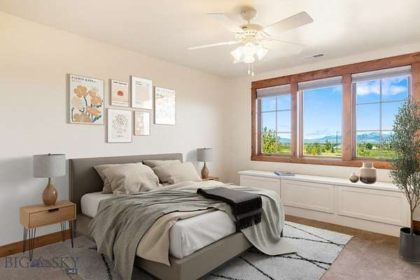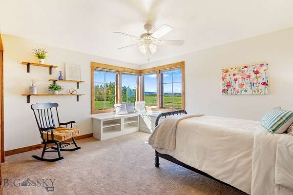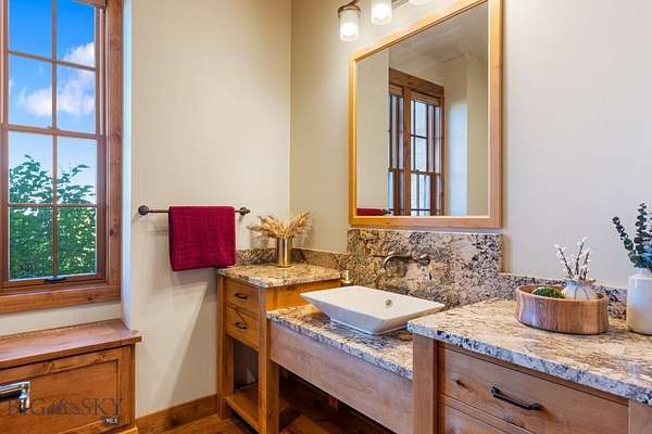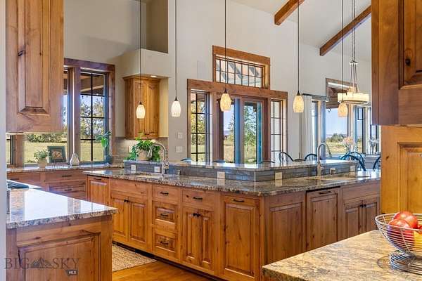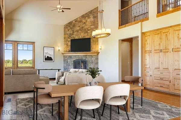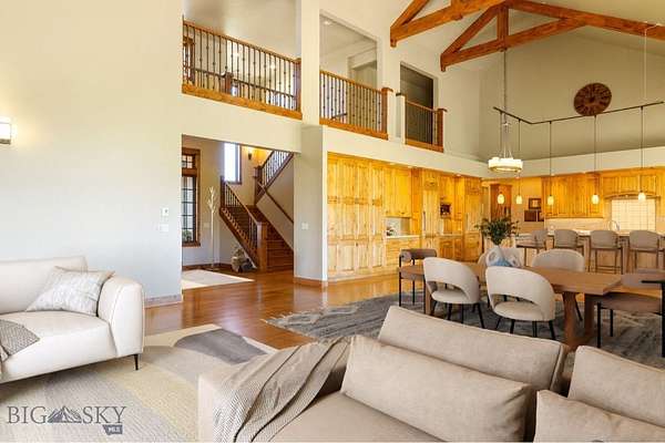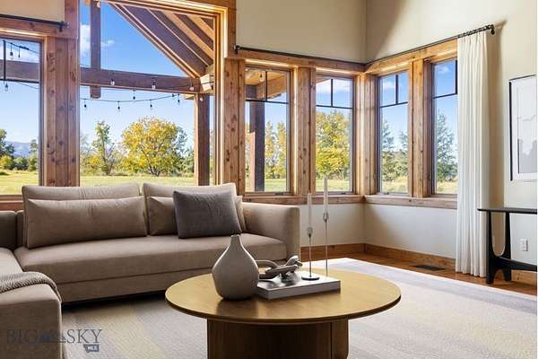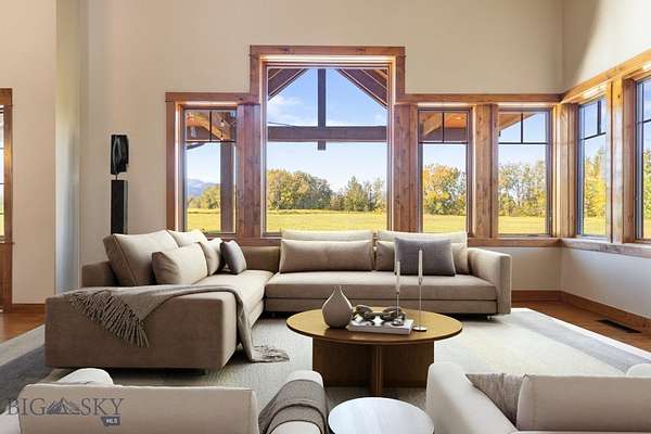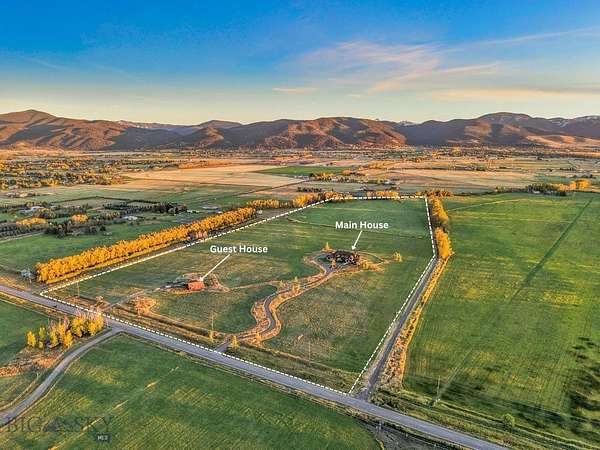 Just fifteen minutes from downtown Bozeman lies a property that feels worlds away. This rare 40+ acre legacy estate is where mountain views, open sky, and Hyalite Creek-fed waters converge into something timeless. This is not just a home; it is a place meant to be passed down; a Montana story still being written. Designed by Claire W. Danes, one of Montana's most respected architects known for his mastery of natural light and harmony with the surrounding landscape, the residence was crafted to capture the soul of the land itself. The home's grand, south-facing orientation invites sunlight to spill across the interiors, framing the Spanish Peaks, the Gallatin Range, and the Bridger Mountains in every window. Each view becomes a living painting that transforms with the seasons. The sound of moving water creates the soundtrack to your mornings. The property offers space to expand into a horse estate with a barn or stables, to create trails that wind along the creek, or to build a sanctuary for future generations. Inside, every detail speaks to craftsmanship and comfort. The chef's kitchen is both functional and beautiful, featuring double ovens, dual refrigerators, twin dishwashers, and an oversized island designed for gathering. The vaulted living room opens to sweeping mountain vistas and a hand-laid stone fireplace that anchors the home with warmth and permanence. The primary suite offers a retreat for the senses. Its spa-inspired bathroom and tranquil views create a haven of rest. A dedicated wellness room and outdoor patio invite movement, meditation, and sunrise yoga sessions. Upstairs, five bedrooms, three bathrooms, and flexible spaces for guests, creativity, or play ensure there is room for everyone. Beyond the main residence sits a three-bedroom guest home, perfectly positioned with panoramic views of the Bridger Mountains. It is ideal for extended family, visiting friends, or a high-end rental opportunity. Outside, Montana living unfolds effortlessly. Enjoy a hot tub beneath the stars, a firepit for long evening conversations, and Middle Creek Ditch bordering the southern edge, carrying water from Hyalite Creek from June through November. The land invites both solitude and gathering, recreation and rest. This is a property meant to be lived in deeply, where mornings begin with coffee by the creek and evenings end under the constellations that once guided Montana's earliest settlers. It is a home designed for generations.