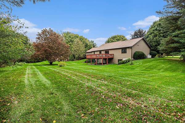 Beautiful One-Owner Home on 2.5 Acres Take a look at this well-maintained, one-owner home offering over 1,600 sq. ft. of comfortable main-floor living space. The inviting living room features a cozy bay window and a charming stone fireplace, perfect for relaxing evenings. The well-appointed kitchen includes all appliances and opens to a spacious dining area with sliders leading to an expansive deck-ideal for entertaining or enjoying the peaceful, private backyard. The primary ensuite provides a comfortable retreat, complemented by two additional bedrooms and a convenient main-floor laundry with a half bath. The unfinished daylight basement is ready to be finished, offering plenty of potential for future living space. In addition to the attached 2-car garage, there's a detached 2-car garage for extra storage or hobbies. Sitting at the end of a cul de sac on 2.5 acres with a secluded rear yard, this home also includes a Generac generator for peace of mind.