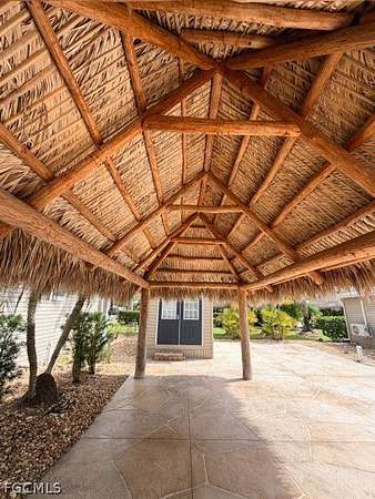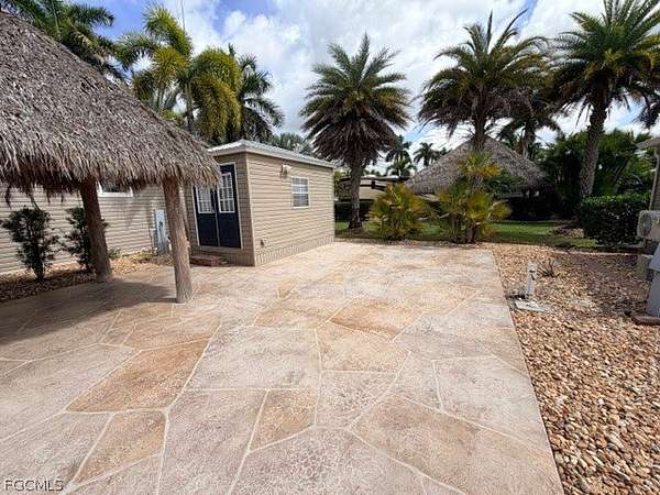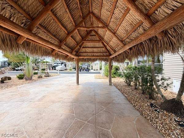 Lot 265 is a Back in stamped concrete lot with your RV facing Sunset Lake. Enjoy the shade from your Big Kahuna10 x 20 tiki hut which will protect your furniture from the morning dew. For your storage and personal needs there is an on-site Amazon 8 x 14' finished shed complete with a shower, toilet, sink and electric on demand hot water heater. The shed can be kept cool inside with a window air conditioner. Inside extra features are a ceiling fan, shelving, a built-in storage cabinet, vinyl flooring and a small TV that is wall mounted. The ceiling is accented by a special wood accent to finish off the shed. The lot location is only steps away from the main clubhouse with a fabulous ballroom, an awesome pool and a patio with a Tiki hut. There is pickle ball, shuffleboard, tennis on site for your enjoyment as well as many special activities such as Cornhole Bags which fly every Tuesday. The resort offers a full-time on-site Activity Director . Come take a tour with us.
