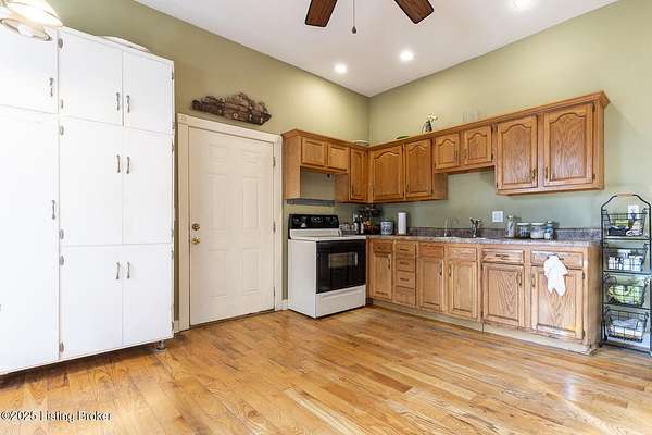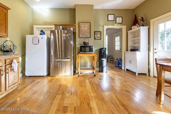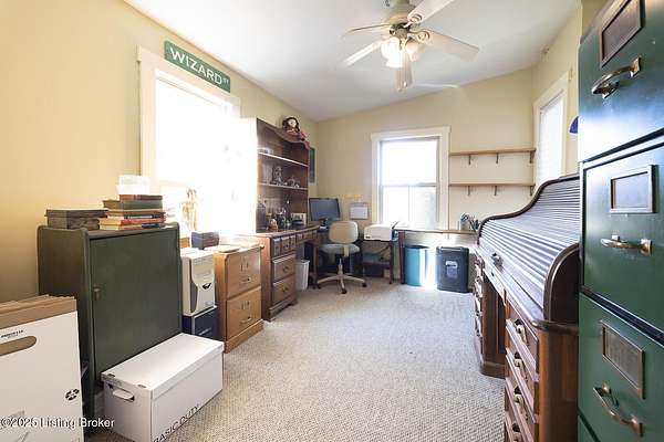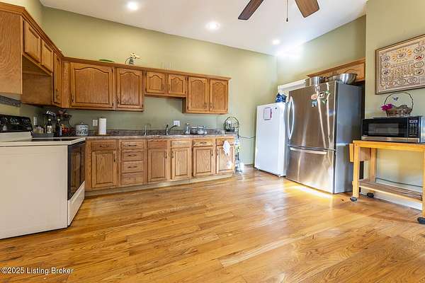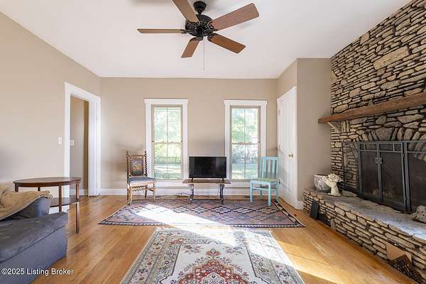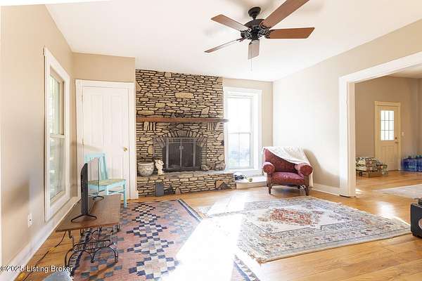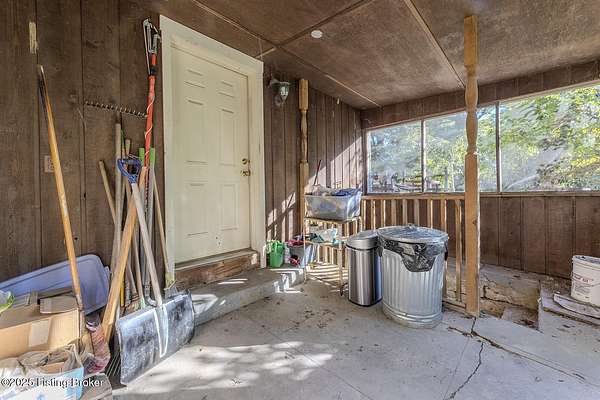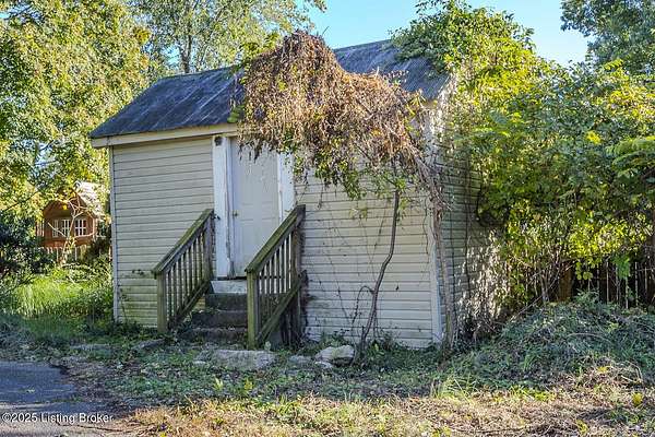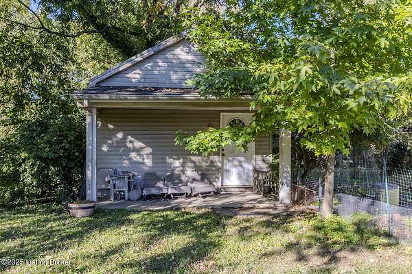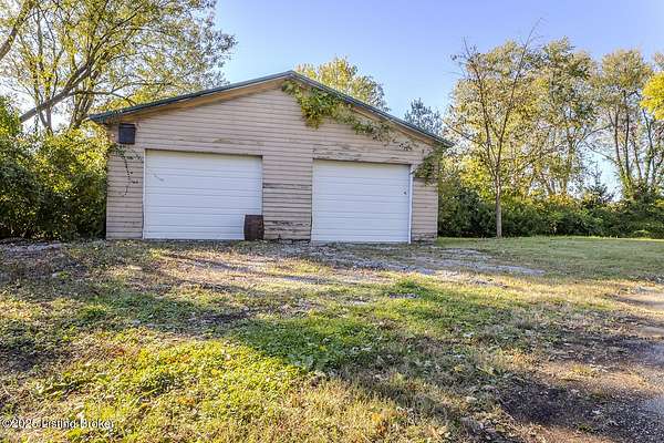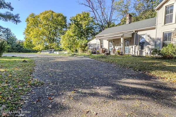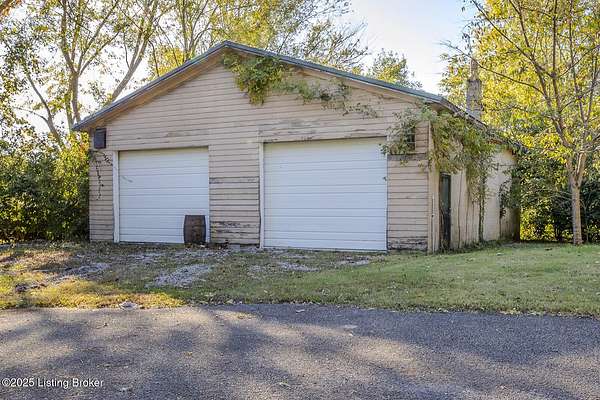 Opportunities Await! 1.67 acres in Northern Fern Creek, a block from the Jeffersontown border. This incredible property is a blend of seclusion & city convenience ~ your own private peaceful retreat. The historic Federalist style home has spacious rooms, wood flooring throughout most areas, replacement windows, a first floor primary bedroom, laundry, a walkout patio & screened in porch off the kitchen. Outside you have a 6 Car Garage/Shop with over 1800 square feet, plus two smaller outbuildings. One of which is most likely the original summer kitchen that has been drywalled, mudded & ready for paint. Many possibilities for this property! Seller is offering a home warranty. Agents, please read agent notes.