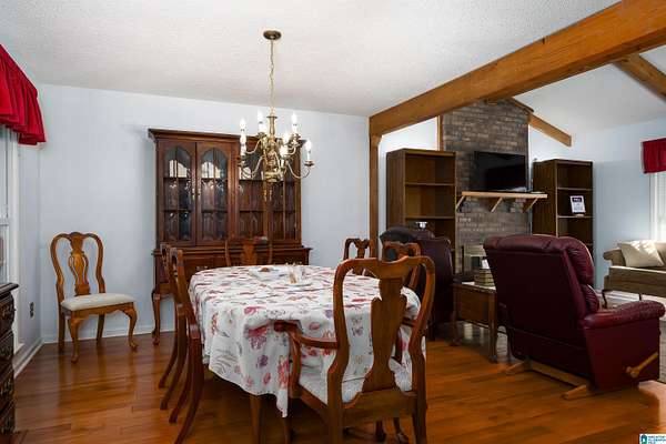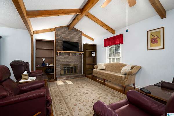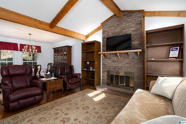 Nestled in the highly desirable Meadow Brook community and zoned for award-winning Oak Mountain schools, this charming home offers comfort, character, and a peaceful setting. The living room features a vaulted ceiling with exposed wooden beams and a classic brick fireplace, creating a warm and inviting space. The kitchen includes a breakfast bar and opens to the dining room with views of the backyard. The main level offers a primary bedroom, two additional bedrooms, and two full baths. Downstairs, you'll find a spacious family room, bonus room, full bath, and laundry area--ideal for additional bedrooms if needed. Outdoor living is where this home truly shines. Enjoy unwinding on the covered back porch, or spend summer days by the in-ground pool and hot tub, all surrounded by a wooded lot that offers privacy and frequent visits from deer. Don't miss the whole house GENERAC generator! This home blends warmth, nature, and community - an opportunity to enjoy Meadow Brook living.