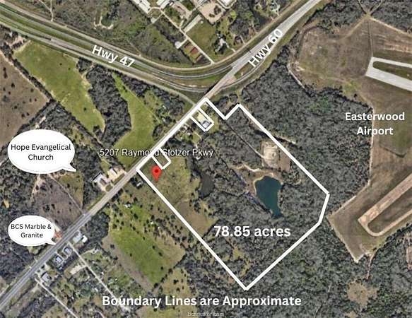 Est $53,673/moIntroducing an exceptional 78+ acres of prime land situated within the highly sought-after College Station Independent School District, in Brazos County, and just a few miles from Texas A&M University. This is a wide ranging property that presents itself for development opportunities. Road frontage Hwy 60/University Drive. With its size, this property holds potential for various development projects, including commercial, residential, mixed use developments and more. Don't miss out on this rare opportunity that combines location, and development potential! This property has multiple tracts: 98991,15334,15325.