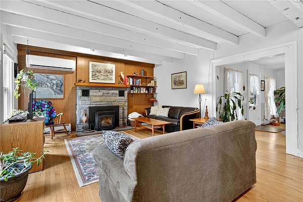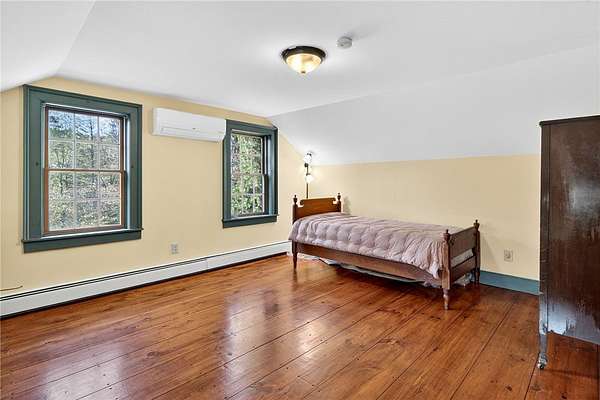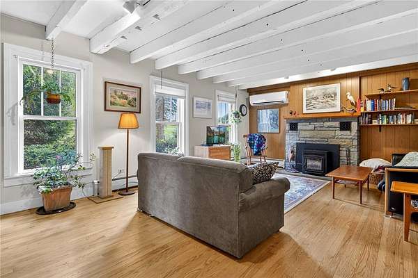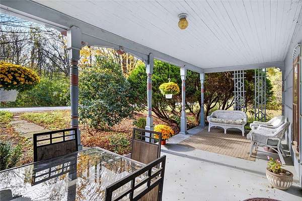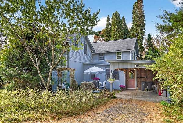 Loved by one family for over 40 years, this Folk Victorian set on 15 acres in the Trumansburg school district is truly special. The heart of the home is over 200 years old and seamlessly blends with contemporary desires, including 3 large bedrooms, two full baths, and an office or fourth bedroom, through expert renovations by master builder Herb Austic that weave in delightful custom milled woodwork and pine floors for warmth and beauty. The primary bedroom is spacious with a wall of windows and a walk-in closet; the formal dining room is open to the living room with exposed beams and a pellet stove for coziness. The kitchen is gorgeously renovated with abundant solid wood cherry Shaker cabinets, granite countertops, modern appliances, and a lovely eat-in area with a picture window to watch the birds as you drink your coffee. The mini split system was installed in 2021, with two outdoor units and 5 indoor mini-splits for heat and AC! The 15 acres surrounding the home guarantee privacy, and offer an extensive back yard, mature trees and flower gardens, along with mixed open areas and woods. Owned frontage along Taughannock Creek allows you access to the water to cool off in the hot months. The barn is an added plus for storage or a workshop, and there is plenty of room to make this house your home. Trumansburg schools, lower Schuyler County taxes.