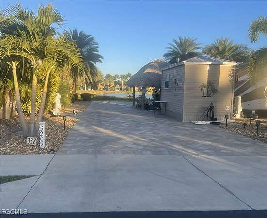 Welcome to Lot 388 at Cypress Trail RV Resort. A 5-star-rated resort located in beautiful southwest Florida in Fort Myers East off I-75. This 35 x 90' East Lake view lot is perfectly located while providing everything you need for peace of mind. The beautiful view of the fountain in the middle of the lake, makes this a breathless spot here in this resort, especially at night with all the beautiful lights around the lake. This class A only lot is ready for any 50 or 30 amp service RV, water/sewer, high-speed internet, and over 75 cable television channels. This electric ready Tiki comes with a 65-inch surround sound LG TV. This tiki was reattached just a year ago and ready for your relaxation with friends and family while enjoying a Traeger smoker. This lot contains a finished 8x15' Amazon Shed with everything you need inside, including on-demand hot water, a vanity with a sick, a medicine cabinet and a toilet, and a 2 years old GE stackable washer and dryer, only used 20 times. It also has a Galanz refrigerator. The club house is just around the corner, accessing all the wonderful amenities, like the pool, gym, laundry, library, pickleball, tennis, bocce, shuffleboard and a large ball room. This resort has so much more to offer like live music concerts, dance events, fun excursions, craft shows, and so much more. The club house is just around the corner, accessing all the wonderful amenities, like the pool, gym, laundry, library, pickleball, tennis, bocce, shuffleboard and a large ball room. This resort has so much more to offer like live music concerts, dance events, fun excursions, craft shows, and so much more. This resort gives you quick access to all of southwest Florida's gorgeous beaches, in addition to Fort Myers Beach and Sanibel Island.
