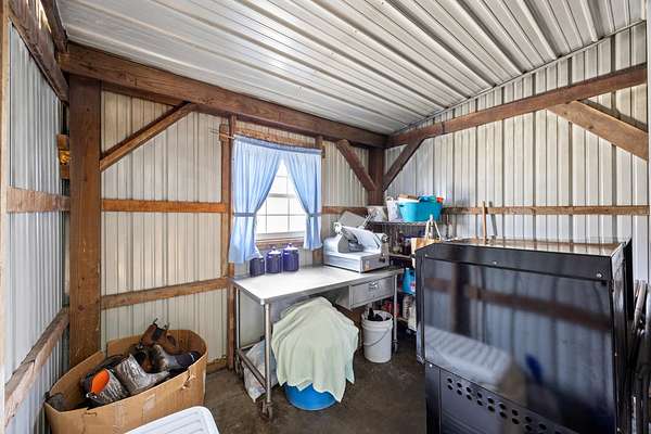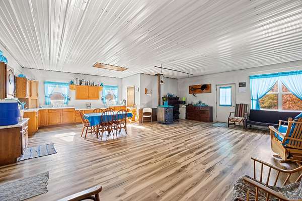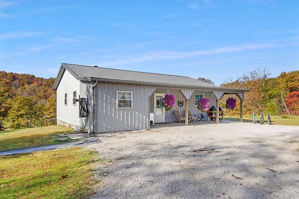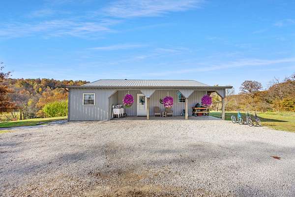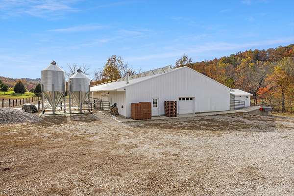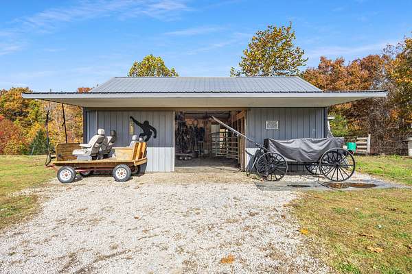 Consider this unique business opportunity! Amish-owned commercial organic egg production operation, with more than 10,000 free-range pasture-raised chickens already on site within a 25-acre fenced area. The 265' X 50' commercial organic chicken barn is solar-powered and was constructed in 2023 and has been a lucrative income-producing business for the past 2 years. Inside the chicken barn, there is a cooler room, an engine room, an egg room, and the capacity to house 10,000 chickens. All refrigeration equipment and lighting within the chicken barn is powered by a battery bank supplied by 15 solar panels. The 1,120 square foot living quarters, currently being used as the sellers' primary home, could easily be finished to make a cozy home for a small family, or it could be converted to an office space for your new egg business. It is constructed with metal paneling inside and out, which would make it very easy to install plumbing and wiring. Out front, you will enjoy the full-length front porch, and inside there is a spacious open area currently being used as a kitchen/living area. The large pantry could be converted to a full bathroom. The 2 bedrooms are not completely trimmed, but present two blank slates to be finished with your personal touches. A 30' X 24' barn with 3 stalls and a hay loft, an 8' lean-to in the front, and 12' shed in the back is ready for a couple of horses or ponies. There are 2 separate water meters on the property, but neither the living quarters nor business is connected to public water. A 200-amp electrical service meter is located close to the road at the "phone shack". Although none of the structures currently have utilities connected, both electrical wiring and plumbing could easily be installed for modern convenience. 90% of the property was fenced with woven-wire perimeter fencing in 2023, and Mill Creek (a flat-bottom creek) runs the length of the acreage, 10 acres of which is wooded. This is a one-of-a-kind opportunity to buy a successful business on 37 beautiful acres of peaceful serenity. There are very few options on the market wherein you can work, play, and LIVE all in the middle of a beautiful valley with fresh air and no close neighbors! Let the chickens roam and do what they do...they will be working for you! (All chickens, barn equipment, feed, and bedding convey with the sale of the property.)