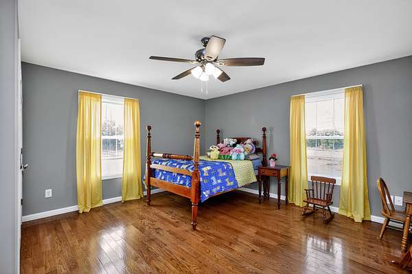 *48-Hr Kick-out* Nestled in a peaceful, highly coveted rural setting on a dead-end street minutes from Harrodsburg/Danville, don't miss this amazing 5 bedroom, 3 bath home on nearly 4 acres! Offering an impressive 3597sf of comfortable living space, this ranch home welcomes w/ gorgeous hardwood flooring! The open living/dining room w/ cozy fireplace & bright family room provide outstanding areas for entertaining. Stylish granite countertops, stainless gas appliances & pass-through window are featured in the galley kitchen! All bedrooms are oversized w/ incredible storage & all baths are generous - (2) w/ walk-in showers! The walk-out finished basement includes a primary suite, modern LVP flooring, second laundry hookup & 2-car garage. Perfect for outdoor enjoyment is a covered front porch, back deck & lower patio. The 30'x24' metal shop presents water/electric (220V), concrete floor, stone wood burning fireplace & loft - ideal for workspace or barn! Acreage is partially fenced & cleared w/ no restrictions - livestock, horses welcome! Only 1 mile to Hwy 127 & Brightleaf Golf Course, this property provides tranquility of country living w/ convenience of close proximity to area amenities! Call now!