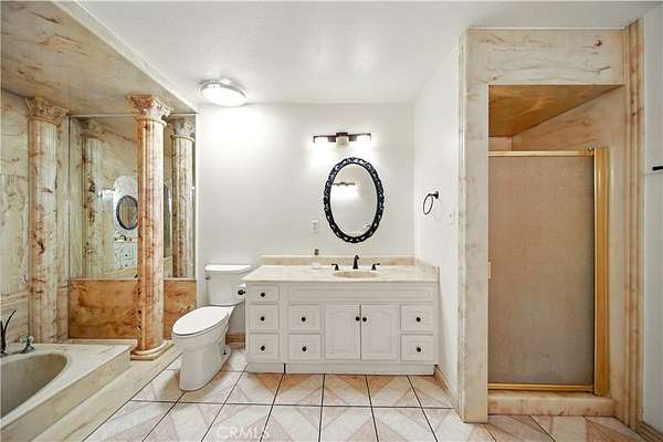 Panoramic city-light and mountain views on over 12 private acres! This gated foothill retreat offers a rare combination of privacy, acreage, and flexible living space with sweeping views across the San Gabriel Valley. Set behind gated access off a secluded street north of Baseline, the single-story ranch-style home provides approximately 2,703 sq. ft. designed for multigenerational living, guest quarters, or potential rental income opportunities. The main residence features an open-concept great room with vaulted beamed ceilings, fireplace, and multiple sliding glass doors capturing breathtaking mountain, valley, and city-light views. The adjoining kitchen includes granite countertops, abundant cabinetry, breakfast bar seating, and stainless appliances ideal for everyday living or entertaining. The spacious primary suite offers direct outdoor access and a large bathroom with dual sinks, soaking tub, separate shower, and generous vanity space. Two additional bedrooms also enjoy scenic views and slider access to the rear terrace. Two additional living areas create exceptional flexibility. The second suite includes a private living room with fireplace, kitchenette, bedroom, bathroom, and separate entrance ideal for extended family, guest suite, or private studio. The third living space features a bedroom, full bathroom, kitchenette-style setup, and its own view patio, offering another independent living area with income or guest potential. Outdoor living spaces maximize the hillside setting with multiple view patios, a private spa, rustic wood fencing, and wide open sightlines capturing spectacular sunrise, sunset, mountain, and city-light views. The expansive acreage offers added privacy, open space, and room to enjoy the surrounding foothill environment. Additional highlights include a 3-car attached garage, indoor laundry room, central HVAC, mini-split systems in secondary suites, extensive parking, and included stove, washer, and dryer. Conveniently located near hiking trails, parks, shopping, dining, and major commuter routes, this unique foothill property combines panoramic views, acreage, privacy, and flexible multi-unit living potential a rare opportunity in a highly desirable setting.
