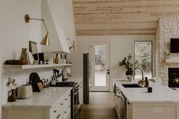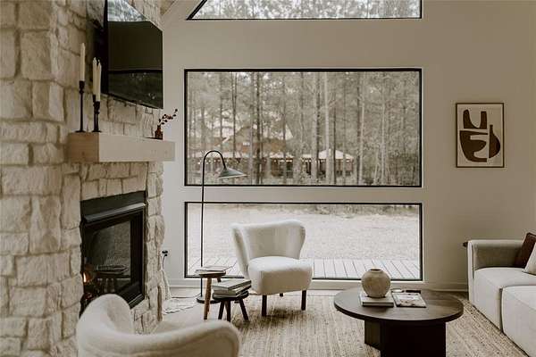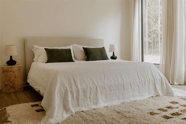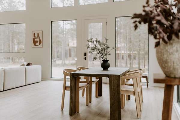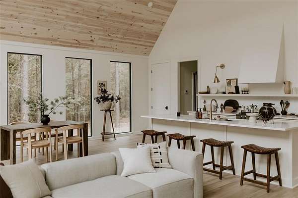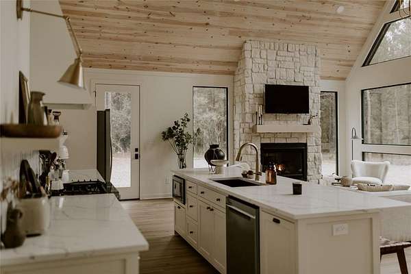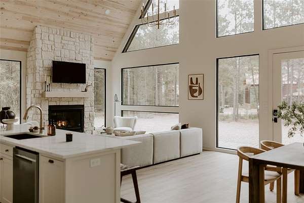 A TRULY CUSTOM AND UNIQUE HONEYMOON SHORT-TERM RENTAL CABIN WITH SUPERB DECOR. A place to escape from the bustling city or the monotony of life in the suburbs, The Denizen is a modern forest retreat nestled among the pines of Broken Bow. The interior design of every room has been meticulously curated, pulling from a variety of global influences. A true reflection of the collected visual memories of her travels spanning Europe, Mexico, and the Middle East, every object holds a story and resonance that can be felt. The Denizen features pottery from Mexico, the softest rug ever from Morocco, handmade stools designed by a Canadian woodworker, art by Copenhagen-based artists, and antiques collected from Paris, Italy, and nearby in Dallas, Texas. Natural materials, earthy tones, and stone tiles are used throughout, making the space feel organic and deeply familiar. The open floor plan, soaring vaulted ceilings, and windows throughout the entire structure give an expansive and immersive feel. The Denizen places you in the very center of nature, where beauty can be appreciated from every angle. TAKE A VIRTUAL TOUR BY VIEWING THE WALK-THROUGH VIDEO
