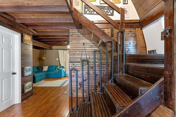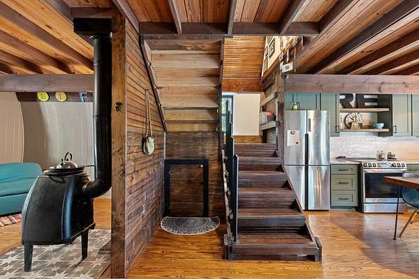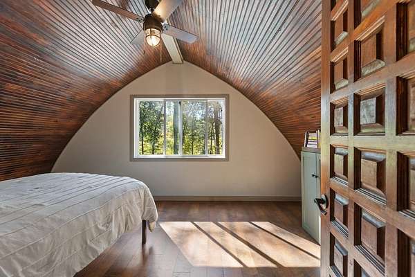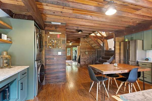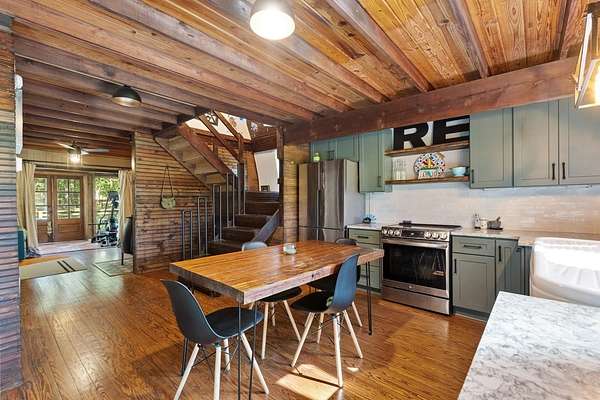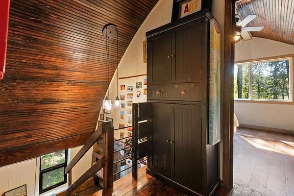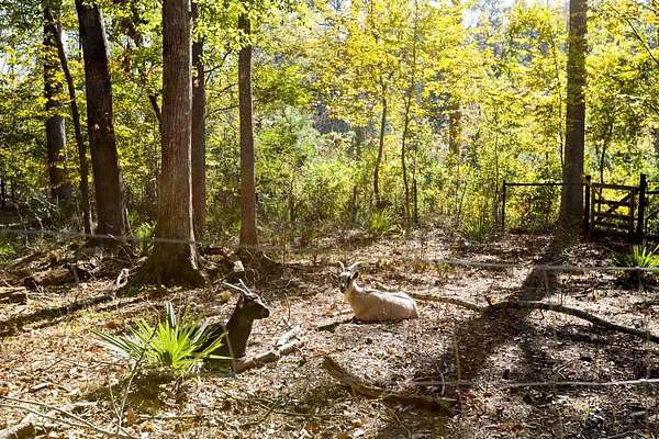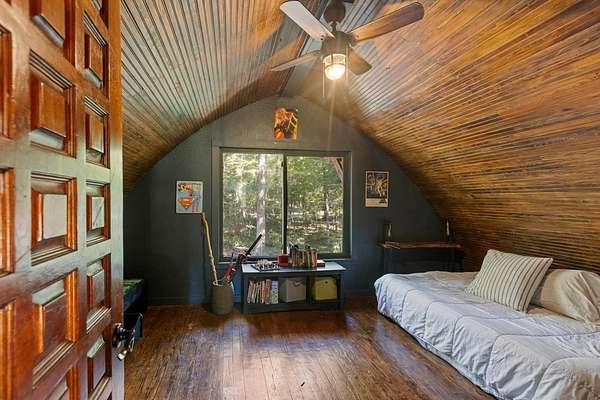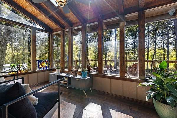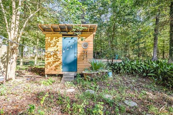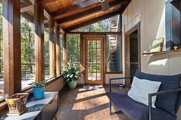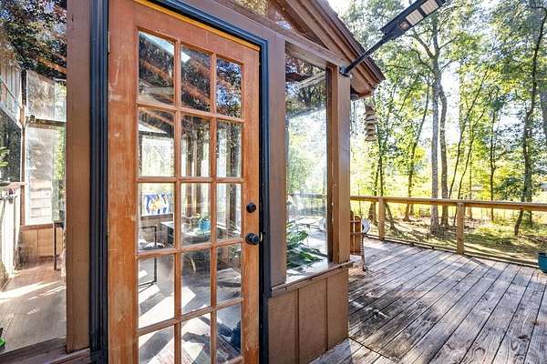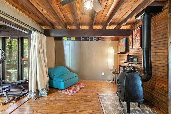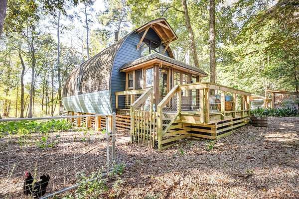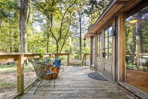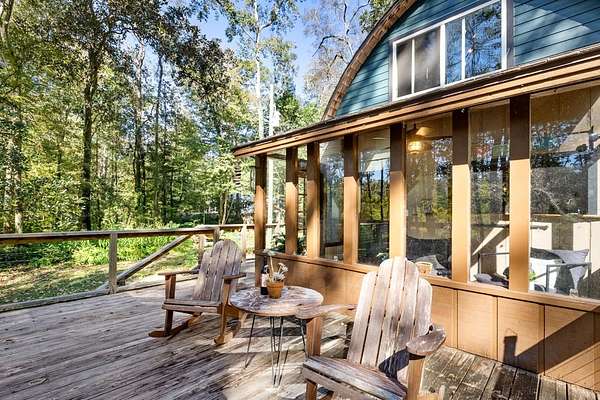 Classic Panhandle barrel home on 2.53 acres! Feel your shoulders drop as you wind along woodsy Conrad Hills Rd to your private nature retreat, freshly renovated in 2023. With decks and sunrooms on either side of the house, you'll be ready for Florida sunshine all day long. Inside, warm Saltillo tile greets you at the entrance to your well-lit sunroom surrounded by tall windows. A wood-burning stove in your pine-paneled living room provides the perfect ambiance to get cozy on those chilly winter evenings ahead. The open floor plan gives line of sight straight through, with lovely views of the surrounding woodlands. Upstairs you'll find two bedrooms, both with aerial views of the expansive natural surroundings, gently sloping to a creek bed bordering nothing but lovely and protected North Florida wetlands in your backyard. Talk to anhinghas, blue herons, & gentle ibises while you walk around, and be sure to bring your hens and goats to graze the ample grassy acreage. Feel at home on your own private preserve, just a few miles away from all the fun of the artisanal Havana renaissance.