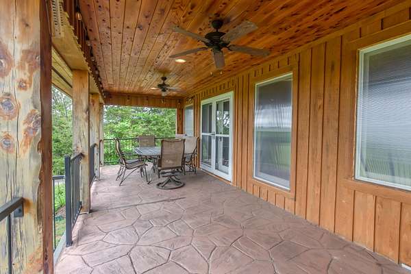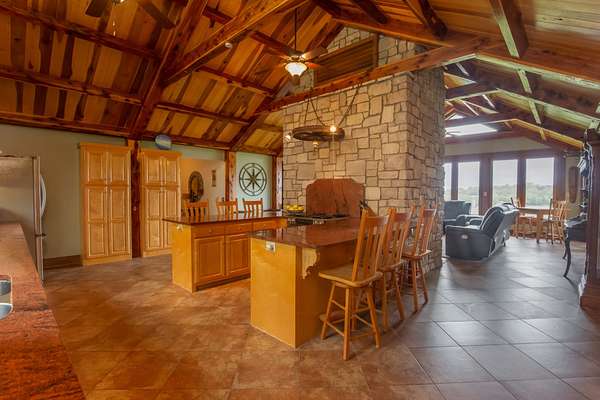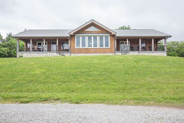 Discover an enchanting retreat nestled amidst 175 acres of rolling hills and lush, fertile land, complete with two serene ponds and creeks--a canvas painted by nature's finest brushstrokes. This 2,480-square-foot countryside haven blends rustic charm and modern elegance, featuring hand-hewn beams, gleaming cherry hardwood floors, and elite craftsmanship throughout. Stone accents harmonize with softer traditional finishes, creating a warm and inviting ambiance. The home boasts three bedrooms and three bathrooms, including a luxurious master suite with a spacious walk-in closet and an oversized shower. Custom windows with electric privacy screens flood the space with light, while a striking stone wood-burning fireplace anchors the living area. The chef's kitchen shines with a designer gas range stove, complemented by a tankless water heater and a convenient two-car garage. Downstairs, an expansive 3,040-square-foot unfinished basement offers boundless potential for customization. This is more than a property--it's a lifestyle, where comfort meets the beauty of the land.