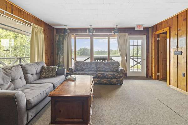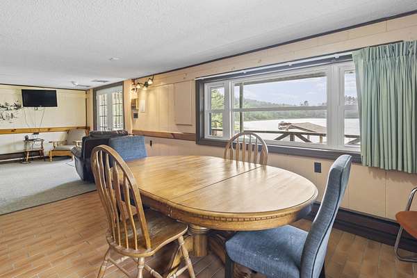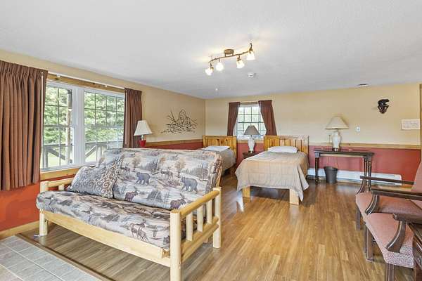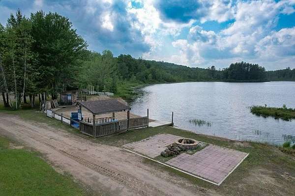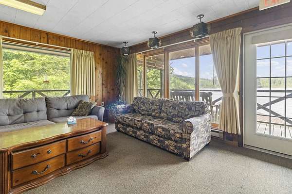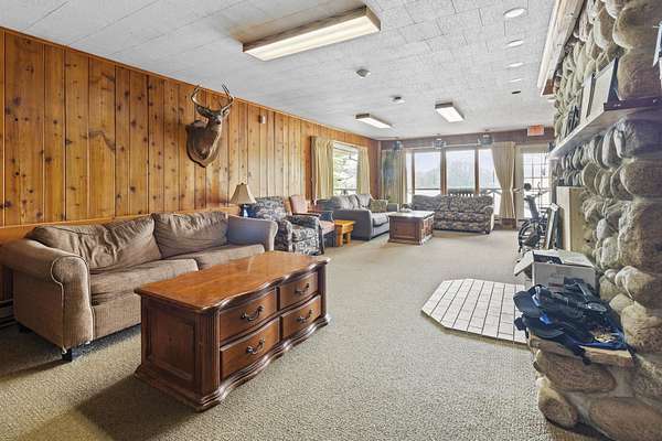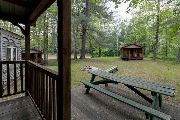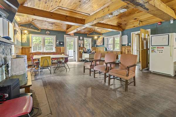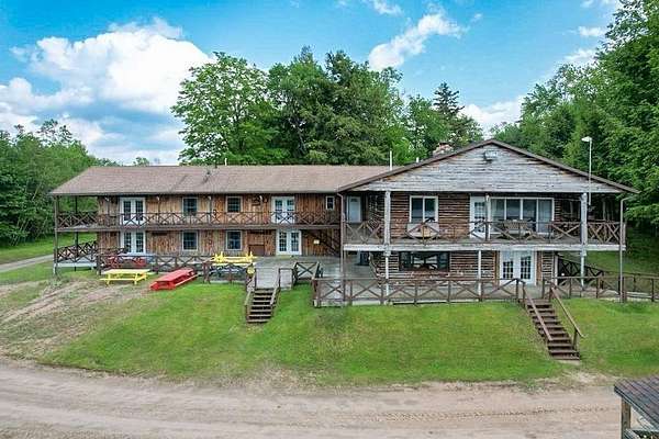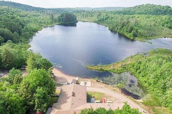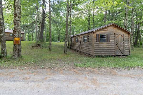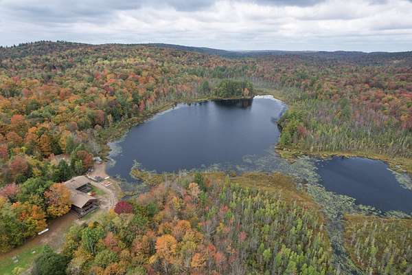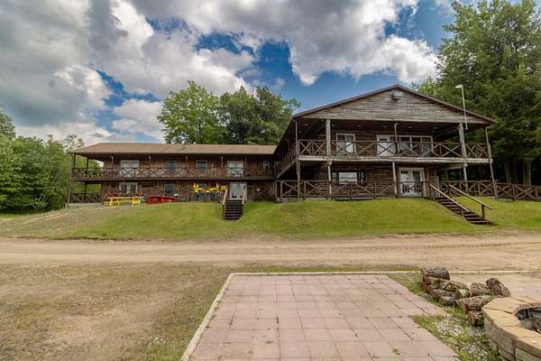 Nestled within the Adirondack Park, this secluded Adirondack Lodge known as 'Dodge Pond' boasts a sprawling 332-acre retreat, including an impressive 16-acre serene pond offering privacy and stunning views. This stargazing property highlights natural beauty, rustic charm, and outdoor recreation opportunities. The property includes a 2-story main lodge encompassing 7,038 sq ft. The upper level features a rustic stone fireplace, a staff kitchen, private office spaces, living room spaces, and multiple suites offering a sleeping area/living room, private bedrooms, and equipped with full bathrooms. The lower level includes a restaurant, dining area, a commercial grade kitchen, storage closets, restrooms, and a living room with a fireplace. The secluded lots offer a 1-story shop/bathhouse building, eight cabins, lean-to-cabins, storage sheds, a pavilion equipped with electrical, a private beach area, and hiking trails. Truly a hidden gem and offers a unique opportunity to own a piece of the Adirondack Park!