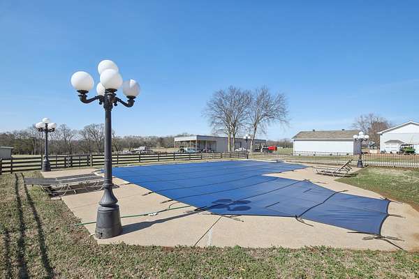 LUXURY LIVING, LAND AND DEVELOPMENT POTENTIAL - This 5+ acre estate offers the perfect blend of modern upgrades, usable land, and even a future investment opportunity or room to grow for a family compound. With prime acreage, it's ideal for horses, recreation, or future development, including the option to subdivide and build additional homes. The in-ground saltwater pool, covered patio, and fire pit create a private retreat for year-round enjoyment. No HOA means you can confidently utilize the 3-stall barn featuring a hay loft, multiple stalls, new electrical, metal roof, and water access. Inside the home, upgrades throughout to include a roof only wanted a few years old, HVAC, pool liner, and flooring. The primary suite boasts a private fireplace and ensuite bath, while the expansive living areas feature another gas fireplace. A modern kitchen connects seamlessly to the dining room and breakfast nook, making it perfect for hosting. Whether you're looking for a luxury retreat, equestrian haven, or multi-home investment or compound, this estate is ready to exceed expectations.