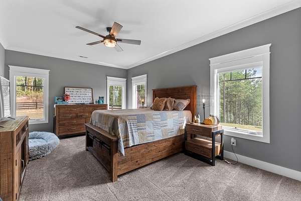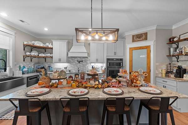 - Bathroom Mirror(s), Cathedral Ceiling(s), Ceiling Fan(s), Crown Molding, Double Vanity, Granite Counters, High Ceilings, High Speed Internet, Kitchen Island, Open Floorplan, Pantry, Soaking Tub, Split Bedrooms, Stone Counters, Tray Ceiling(s), Walk-In Closet(s), Walk-In Shower