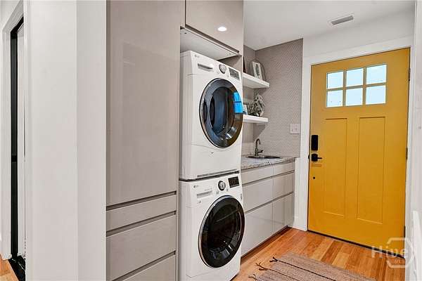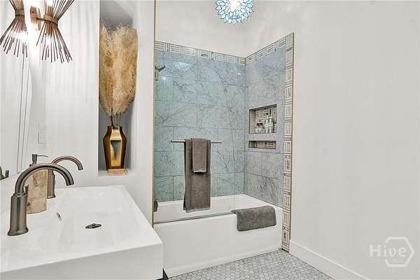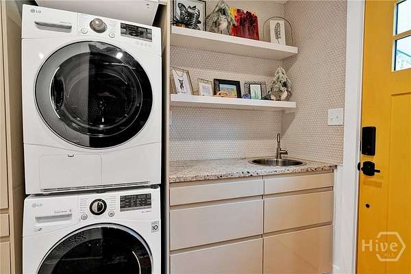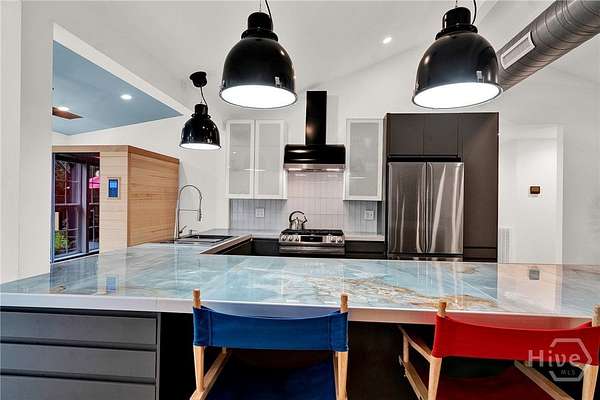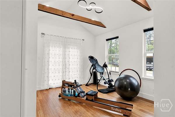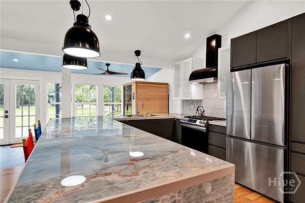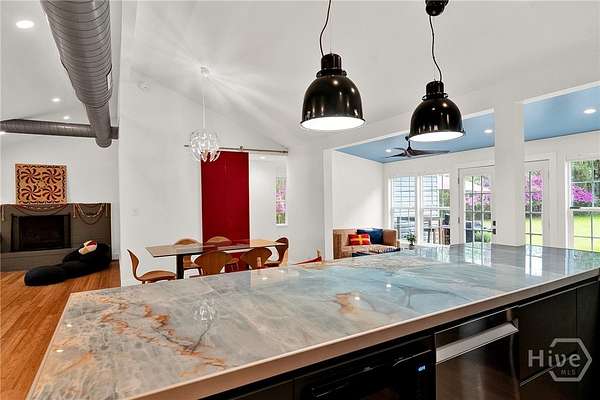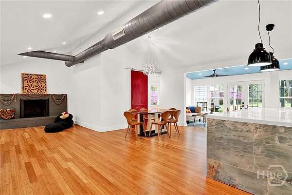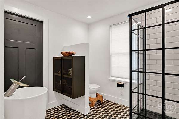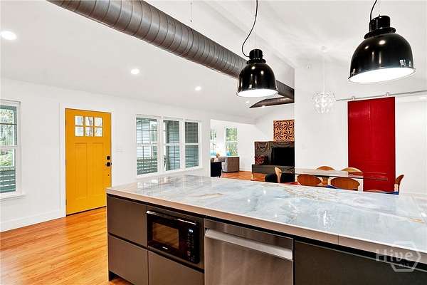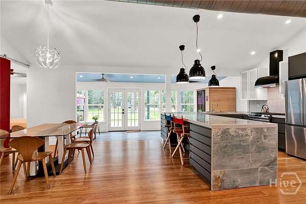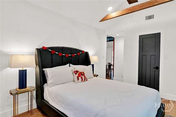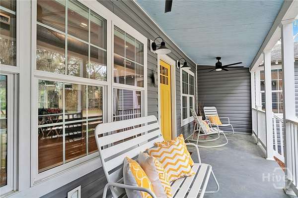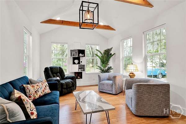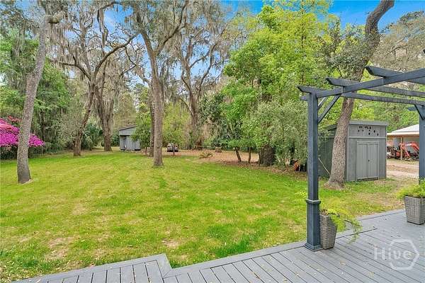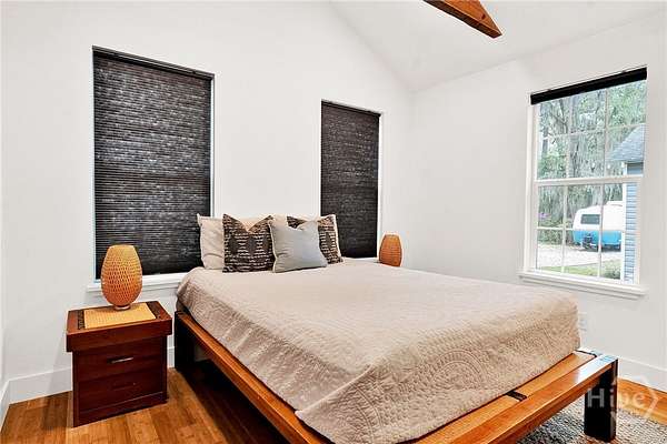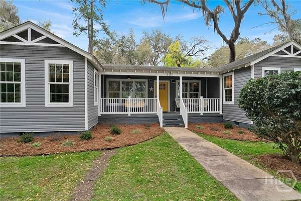 This beautifully restored Lowcountry bungalow blends modern style with natural charm, set on a private 2.3-acre wooded lot beneath live oaks draped in Spanish moss, with marsh views of the Vernon River. Designed with an open, light-filled layout, this turn-key home sits in a quiet, walkable, and highly desirable neighborhood. The home has been fully upgraded with high-efficiency systems, including new framework, HVAC, septic, electrical, plumbing, roof, siding, spray foam insulation, and more. Interior features include sustainable bamboo flooring, updated cabinetry, and modern appliances. The 3-bedroom, 2-bath layout includes a primary suite with a queen bed and en-suite bath featuring a Jacuzzi tub, a second bedroom with a queen bed, and a versatile third bedroom with a Murphy queen bed that can also function as a home gym, with direct access to a guest bath. Enjoy serene outdoor living from the covered front porch or spacious rear Trex deck overlooking fruit trees-loquat, orange, and grapefruit-and flowering plants recognized on the Rosalynn Carter Butterfly Trail. A standout feature is the detached 290-sqft "Urban Craftsman" tiny home by Handcrafted Movement, featured on HGTV. Ideal as a rental, guest suite, or in-law space, it includes a lofted queen bed, full kitchen, washer/dryer, and a spa-like bath. The property offers endless potential, from hobby farming to additional homesites-all with no flood insurance required.