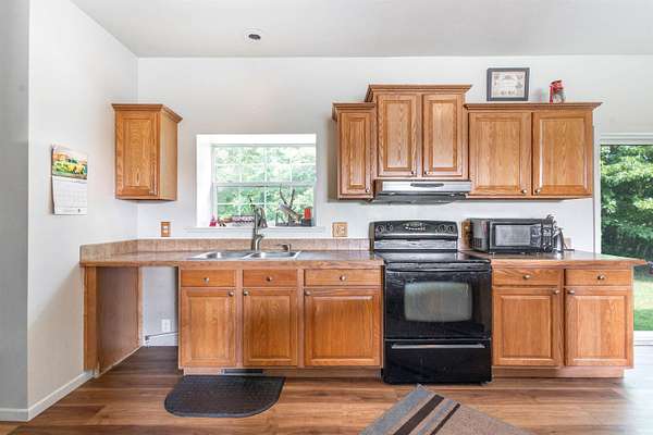- 1 st Bedroom En Suite, Cable Ready, Ceiling Fan(s), Ceiling-Cathedral, Countertops-Laminate, Custom Cabinetry, Detector-Smoke, Dryer Hook Up Electric, Foyer Entry, Garage Door Opener, Garage Utilities, Kitchen Exhaust Hood, Main Floor Laundry, Main Level Bedroom Suite, Open Floor Plan, Range/Oven Hook Up Elec, Refrigerator, Split BR Floor Plan, Washer Hook-Up, Water Heater Electric, Window Treatments