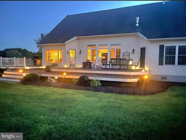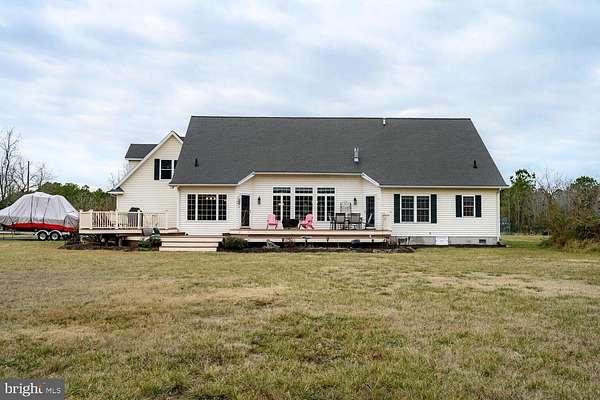 Lovely, serene waterfront Cape Cod situated on 5.5+/- acres along protected Webbs Creek/Fishing Creek, just minutes from the Choptank River. One-level living offers 3 bedrooms, 2A 1/2 baths, a private home office, cozy dining room, and a great room with vaulted ceilings and a corner stone gas fireplace that showcases a massive waterside deck (approx. 1,000 sq. ft.). Horses are permitted on this expansive lot, adding to the charm and versatility of this property. The primary bedroom features stunning water views, a tray ceiling, deck access, and a luxurious bathroom suite with a jetted tub, double vanity, separate glass shower, and an oversized walk-in closet. The chef-ready custom kitchen provides ample space for meal prep, a large pantry, SS appliances, and freshly painted cabinets, all enhanced by extensive detailed molding throughout. Recent updates include an encapsulated crawl space, high efficiency heat pump and a Rinnai tankless water heater. Relax on the waterside deck with your morning coffee or unwind in the evenings while watching blue herons, eagles, deer, and other abundant wildlife. The oversized garage accommodates two vehicles with extra space for watersport toys, and a deep-water community dock (approx. 6 ft MLW) is located at the end of the street. A private pier is permitted. Additional living space or storage is available in the unfinished 2nd level (approx. 1,500 sq. ft.) with a rough-in for a bathroom. Everyday feels like a vacation in this exceptional waterfront retreat!