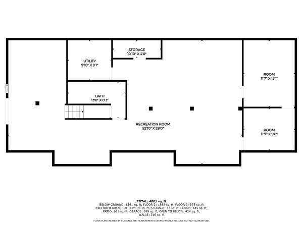 - Basement, Bathroom x 4, Bedroom x 3, Laundry Room