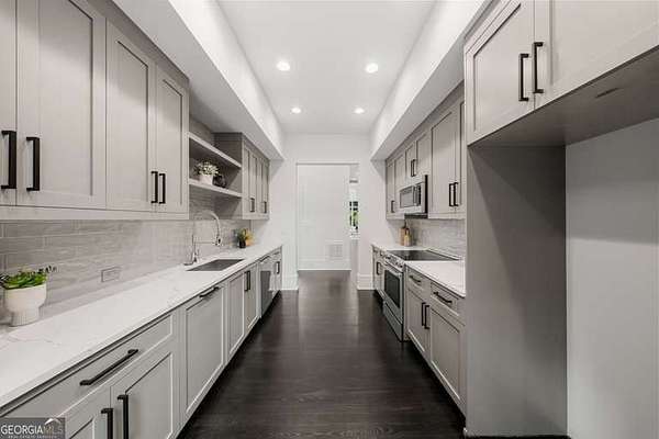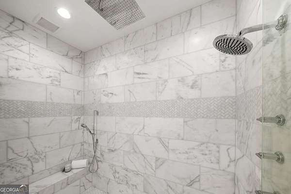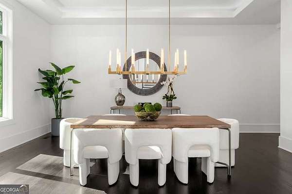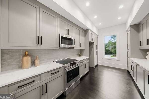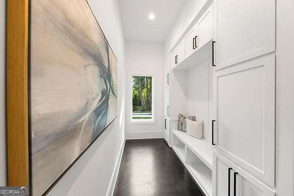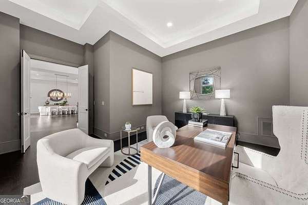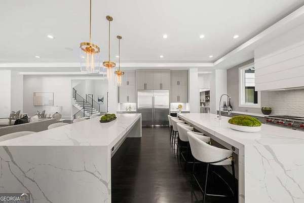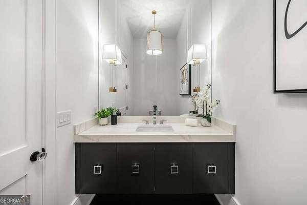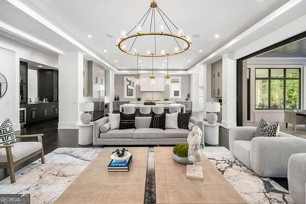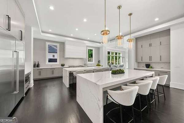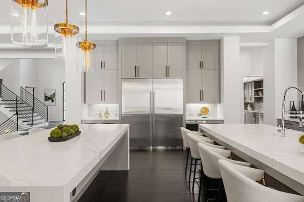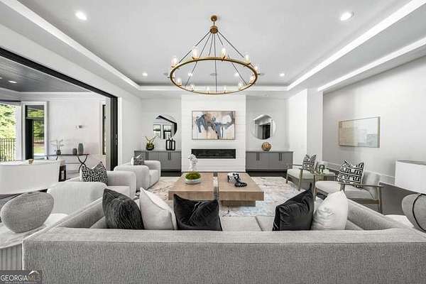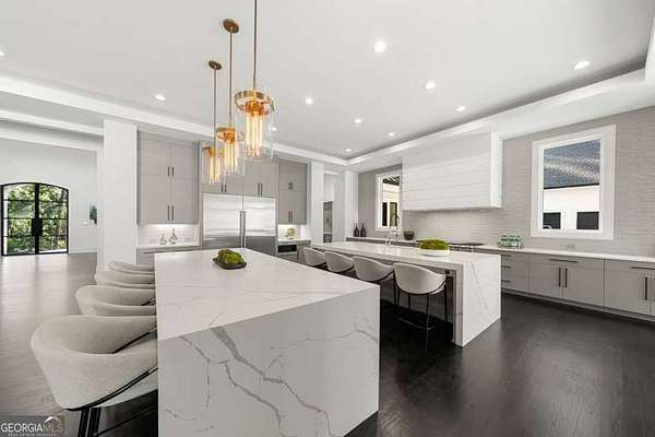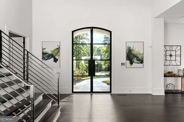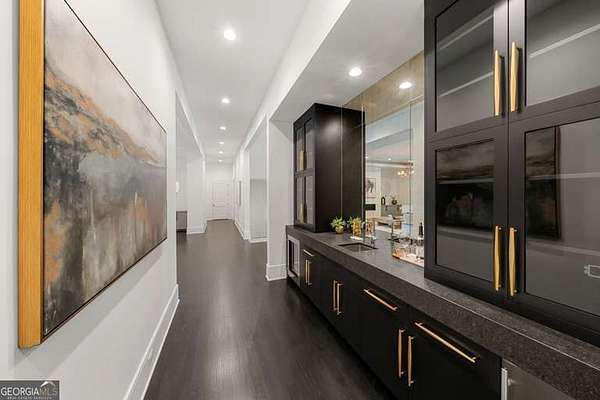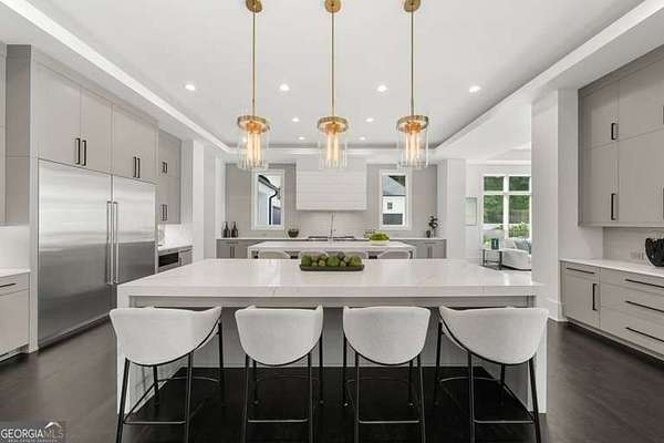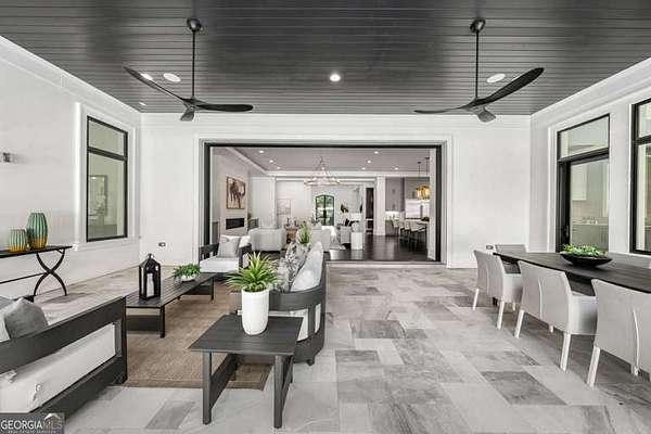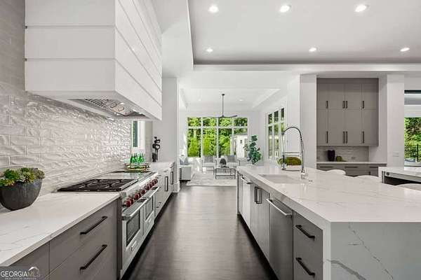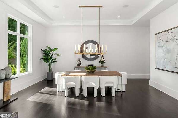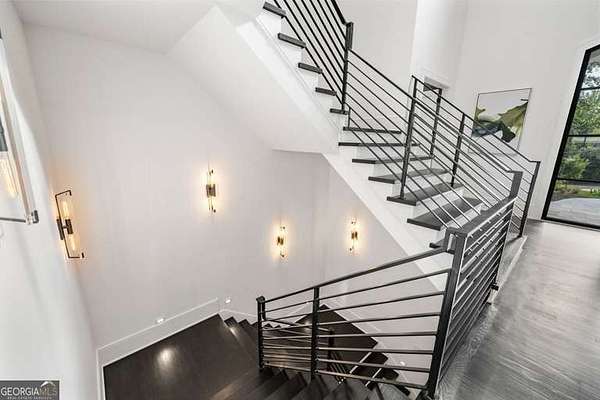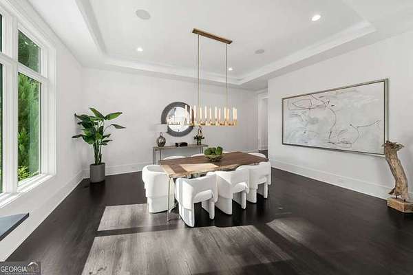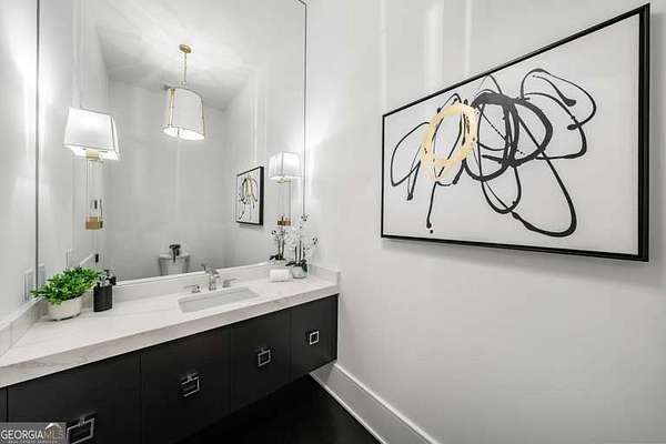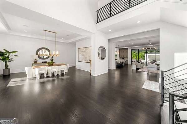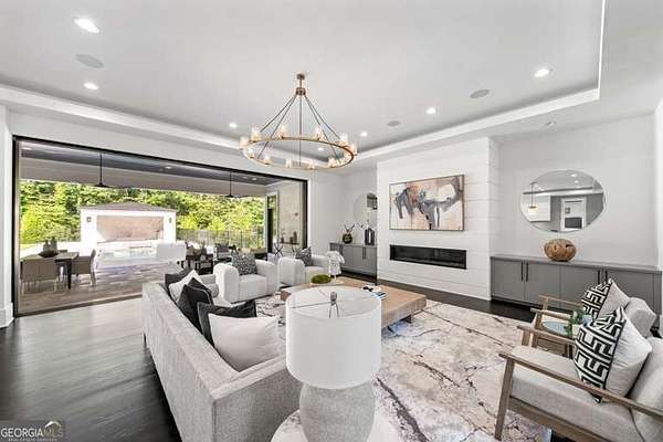 Extraordinary quality and craftsmanship by award-winning Loudermilk Custom Homes define this European Modern residence set on a private, wooded 2+ acre corner lot in highly sought-after Chastain Park. This move-in ready home welcomes you with a dramatic three-story staircase and 12-foot ceilings on the main level, setting the tone for refined, modern living. The main living area features a sleek linear fireplace and expansive 20-foot glass pocket doors that open to the covered patio, creating seamless indoor-outdoor flow. The kitchen is a magnificent space, appointed with stainless steel appliances, ample quartz counter space, a dry bar, a large island, and a breakfast bar overlooking the spacious family room, making it ideal for both everyday living and entertaining. The dining area is generously sized and filled with natural light, while the screened-in porch offers peaceful views of the surrounding landscape and provides the perfect setting for hosting or enjoying a quiet afternoon. Upstairs, the expansive primary suite serves as a private retreat, featuring a sitting area, a built-in fireplace, a spacious walk-in closet, and a spa-inspired en-suite bath with custom vanity, separate soaking tub, and glass-enclosed shower. Secondary bedrooms include en-suite bathrooms and are complemented by a large flex room suitable for future home amenities. The basement also features a guest suite, a potential space for a home gym or sauna, office, media room, and includes space for a future elevator to serve all levels. The walk-out main level is designed for entertaining and opens to the backyard, where a first-floor luxury pool and outdoor cabana with full bath create a true resort-style setting. A five-car garage completes this exceptional property, all conveniently located near parks, schools, restaurants, and premier shopping.