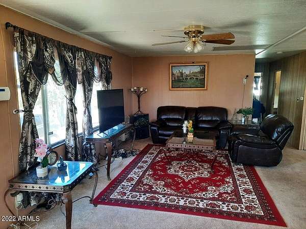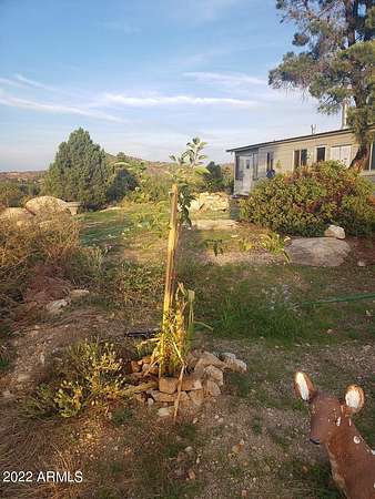 Est $1,435/moTop of the World home with Highway 60 with 911 feet of frontage on 2.82 acres. 40 minutes travel from the valley with 15 degree cooler temps. Sun room on West side for sunsets. Two entrance circular drive off highway. Unobstructed mountain views of Hutton Peak from back of home. 2 bedroom - 2 bath - 1233 square feet. Manufactured home with new carpeting - new metal roof in 2018. Private well. 5 pads in addition to home site. Think of the possibilities. Equal Housing Opportunity