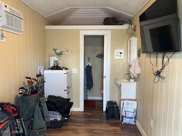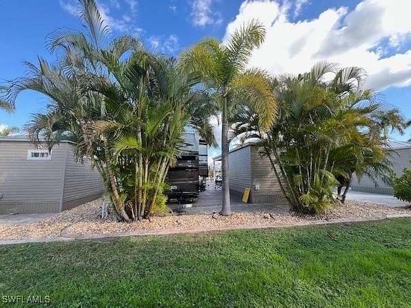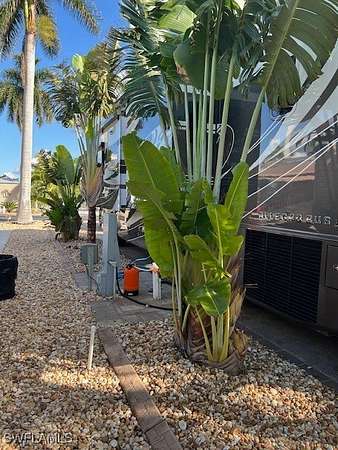 Lot 289 is a straight east facing back in lot and has epoxy concrete on the pad with a soothing, medium brown treatment. It is trimmed out in river rock with a professionally done irrigation system installed for automatic watering of your plants. The landscaping is professionally installed throughout the lot with extra side and rear pavers making the patios much bigger. Sitting on the lot is an 8 x 15' Amazon shed that was built in 2019 and attached exterior 15 foot roof extension (porch) complete with extra electrical outlets for more convenience. The finished Amazon Shed is medium brown plank flooring, painted wood side walls with a finished ceiling, fan and lights. To keep it cool there is an inside window air conditioner and there is extra storage above the bathroom area. Also included in the shed is a shower, toilet and sliding doors for privacy. The main room provides a cabinet with a sink that has a lower and upper mirrored cabinet. There's an in wall washer and dryer, an on-demand hot water heater and a digital flatscreen TV. The double doors that lead to the exterior have adjustable door blinds.This lot is only steps away from our clubhouse.